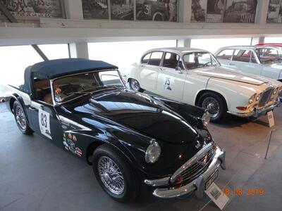 Der Tag versprach, heiß zu werden. Als Treffpunkt war 11Uhr auf dem Parkplatz des Biomarktes in Müllheim ausgemacht und unsere kleine Reisegesellschaft fackelte ob der schon ziemlich hohen Temperatur nicht lange, wer mit wem in wessen klimatisierten Automobil die Reise gen Basel antrat. Einfach den kürzesten Weg über die Autobahn zu nehmen, stand nicht zur Debatte. Zum einen, weil nicht jeder eine gültige Vignette hatte, zum anderen, weil Reiseführer Alexander sich echt Mühe gegeben hatte, auf beschaulichen Nebenstraßen unser Ziel zu erreichen: das Pantheon in Basel. Seinen Ursprung hat das Wort als Begriff für einen kuppelförmigen Tempel, in dem die alten Griechen ihren Göttern huldigten. Das Pantheon Basel – ein moderner Kuppelbau – dient heute als Museum, in dem Oldtimer-Liebhaber ihrer Leidenschaft frönen können. Das Rundgebäude beherbergt ein Restaurant, die Pantheon-Classic Garage mit ihren Dienstleistungen wie Vermietung und Verkauf von Oldtimern sowie Vermietung von Eventflächen, Boxen und Veteranen-Parkplätzen. Initiiert wurde der Umbau der ehemaligen Maschinenhalle Züblin vom Basler Unternehmer Stephan Musfeld, der einen Begegnungsort für Oldtimer-Besitzer, -Liebhaber oder –Interessierte schaffen wollte. Er ließ in die kreisrunde Halle eine Rampe einbauen, die sich spiralförmig nach oben windet und auf verschiedenen Ebenen großzügig Platz für die ausgestellten Automobile, Fahrräder etc. bietet. Bei dieser inzwischen 24. Sonderausstellung ging es Stephan Musfeld um die Gegenüberstellung von frühen Design-Klassikern bis zu den heutigen, hoch technologisierten und leistungsstarken Boliden. Von 14 Marken wird jeweils eine Design-Ikone und ein modernes Gegenstück vis-à-vis präsentiert – insgesamt also 28 Autos. Schnell waren die Cracks unserer Gruppe in Gespräche über Fortschritte der Technik und den Wandel des Designs in den letzten 90 Jahren vertieft, diskutierten über „Gefallen“ und „Nichtgefallen“ mit dem – Überraschung! – Ergebnis, dass dies im Auge des Betrachters liegt. Erinnerungen wurden geteilt, Begebenheiten erzählt, Bedauern über verpasste Kaufgelegenheiten oder veräußerte Lieblinge ausgetauscht, kurz: es kam keine Langeweile auf und jeder Einzelne auf seine Kosten.