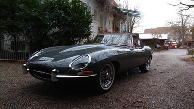 Mit dem E-Type gelang Jaguar bei der Vorstellung 1961 auf Genfer Automobilsalon ein ganz großer Wurf. Das Auto stellte mit seinem atemberaubenden Design und seiner außergewöhnlichen Leistung die Wettbewerber weit in den Schatten. Das von Malcolm Sayer gestaltete Automobil lehnte sich in der Formensprache an den durch Rennerfolge bekannten D-Type an. Der E-Type spielte eine entscheidende Rolle in der Geschichte von Jaguar und festigte den Ruf des Automobilherstellers als Hersteller von Hochleistungssportwagen. Er gilt als Design-Ikone und selbst Enzo Ferrari sprach für viele Automobilenthusiasten von ihm als eines der schönsten Autos, die je produziert wurden. Zu den besonderen Merkmalen des E-Type gehörte seine außergewöhnliche Leistung. Der Motor war der bekannte XK-Sechszylinder mit 3.8 Litern Hubraum, hier aber mit Straight Port Zylinderkopf und drei SU HD8 Vergasern. Die Leistung wurde mit 265 bhp benannt, auf dem deutschen Markt wurden daraus 210 DIN-PS. Er wurde mit einer Höchstgeschwindigkeit von 240 km/h und einer Beschleunigung von 0 auf 100 km/h in 7,0 Sekunden angegeben. Diese Werte waren 1961 fast schon außerirdisch und der E-Type war damit eines der schnellsten Serienfahrzeuge seiner Zeit. Mit der höchst aufwändig gestalteten Einzelradaufhängung an der Hinterachse und den Vierrad-Scheibenbremsen hob sich der E-Type technisch von vielen, oft doppelt so teuren Supersportwagen seiner Zeit ab und bot dem Kunden außergewöhnliches Leistungsvermögen.
