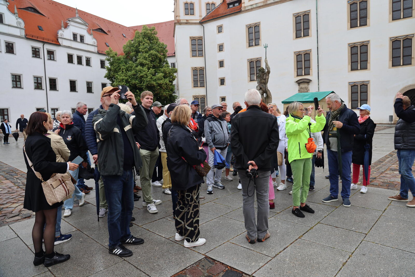 Torgau empfing die Jaguar-Freunde mit historischer Kulisse und offenem Herzen. Die Fahrzeuge sorgten auf dem Marktplatz für staunende Blicke. Ein Höhepunkt war sicherlich die Besichtigung des Renaissance-Kleinods Schloss Hartenfels.