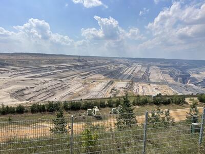 Nach Speis und Trank ging die Fahrt weiter zur Terra Nova, zur Abbruchkante des rheinischen Braunkohlerevieres Hambach. Beeindruckend, wenn man aus der Nähe sehen kann, was die riesigen Schaufelbagger alles abgetragen haben.