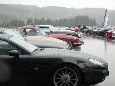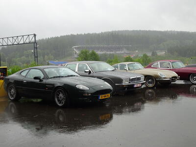 Wir parkten unsere Wagen auf dem reservierten Parkplatz des Belgium Jaguar Drivers Club, setzten uns auf die nächststehende überdachte Tribüne und verfogten interessiert die verschiedenen Rennen der Boliden.