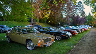 Aus Sicherheitsgründen durften die Wagen auf der Parkanlage hinter dem Hotel abgestellt werden und boten allen Hotelgästen einen beeindruckenden Ausblick.