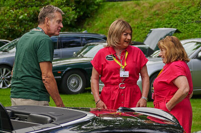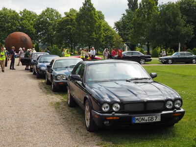 Die Wagen standen, dank des tatkräftigen Einsatzes der Einweiser, schön geparkt im Schlossgarten und boten Gelegenheit zum Begutachten und Fachsimpeln, oder zum Verweilen.