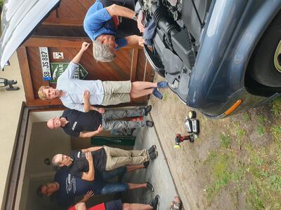 Wir trafen uns beim Sektionsleiter zum Grillen, hier wurden wir fachmännisch ins Scheinwerfer-Polieren eingeführt. Es war eine gemütliche Runde für Jung und Alt.