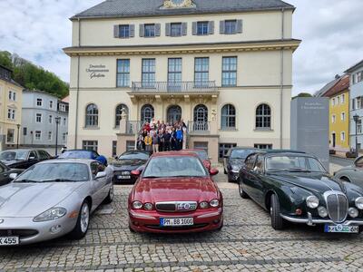 Aus einem Industriegebiet ging es dann zum etwas mondäner anmutenden Schloss Moritzburg, von August dem Starken als Jagd- und Lustschloss ausgebaut und heute eine geschichtsträchtige Sehenswürdigkeit als Teil eines landschaftlichen Ensembles und Drehort des Märchenfilmes „Drei Haselnüsse für Aschenbrödel“. Dort ließen wir nach der interessanten Führung unsere Fahrt bei einem leckeren Mittagessen ausklingen und die Jaguarfreunde zerstreuten sich dann wieder in alle Winde.