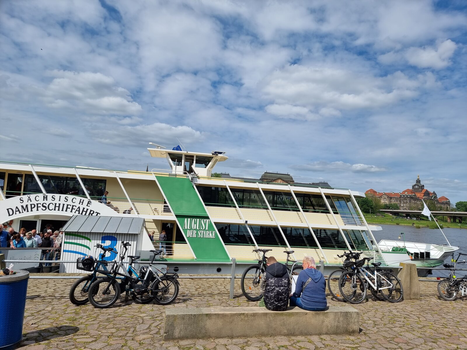 Nach dem Mittagsimbiss fuhren wir mit dem Elbdampfer von der Anlegestelle des Schlosses Pillnitz nach Dresden, wo wir das Verkehrsmuseum besichtigten. Eine tolle Sammlung von Autos, Fahrrädern, Motorrädern und interessanten Eisenbahnen, erklärt von einer sachkundigen Führerin, die immer wieder Querverweise zu ziehen vermochte und so ein Bild von der Kulturgeschichte der Mobilität zeichnete!