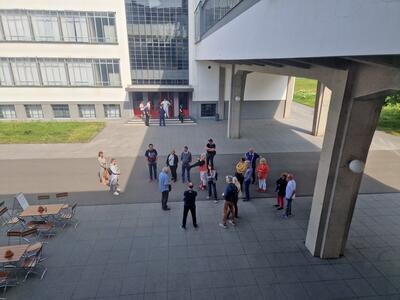 Angekommen in der Gropiusallee 38 parkten wir unsere Auto´s vor dem historischen Bauhausgebäude, welches Walter Gropius 1926 in Dessau baute – mit seiner weltbekannten Architektur.