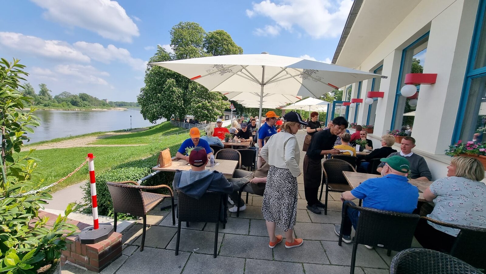 Weiter ging es dann zum „Kornhaus“, einer Ausflugsgaststätte an der Elbe. Diese gehört ebenfalls zu den Bauhausbauten in Dessau-Roßlau. Nach dem Mittagessen genossen wir noch ein weilchen den Blick auf die Elbe und das schöne Wetter, bevor es weiter ging in Richtung Schloss Mosigkau. Es kam auf dem Weg noch zu einem kurzen Zwischenstopp, für einen Blick und einige Foto´s auf das Schloss Großkühnau.