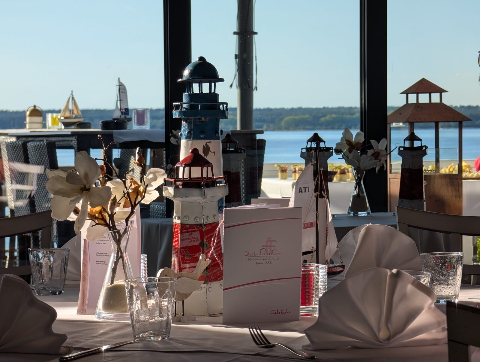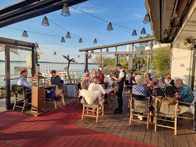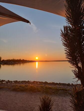 Wir stehen auf der Veranda der Bar. Frühsommerliche Wärme, ein leicht verschleierter, blauer Himmel spiegelt sich in ruhigen, fast endlos erscheinenden Wasserflächen. Erfrischende Getränke und der Genuss des Fingerfood in diesen Abendstunden. Es folgt ein Sonnenuntergang, der von Capri stammen könnte! Das ist eine gute Einstimmung für uns auf die kommenden Tage unserer Frühjahrsausfahrt!