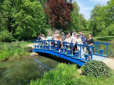 Das Roadbook führt uns anschließend nach Bad Muskau, an der Lausitzer Neiße gelegen, dem Grenzfluss zu Polen. Das Lausitzer Gartenreich des Muskauer Parks ist ein Lebenswerk des berühmten Hermann Fürst von Pückler (1785-1871). Angenehm warmes Sommerwetter auch hier. Wir lassen uns von unserer humorigen Parkführerin die Garten-Philosophie des Fürsten erklären. Die Umsetzungen dieser Visionen in Natura waren derart kostspielig, dass der adeligen Familie ständig die Zahlungsunfähigkeit drohte. Aber der Fürst hatte noch andere Talente und nicht zuletzt eine liebende Ehefrau die weise war, ihm alles verzeihend und dabei sehr weitblickend für das Wohl von Familie und Besitz. All das ist bereits hinreichend beschrieben.