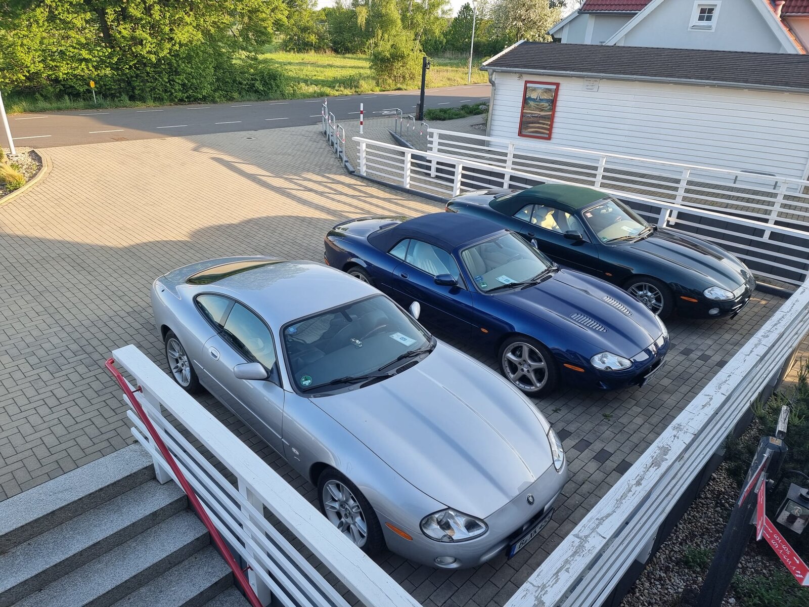 Wo man hinblickt, gibt sich das Hotel „Der Leuchtturm“ ein maritimes Motto. Die reservierten Zimmer waren bis abends von den 23 Teilnehmern bezogen. 10 Jaguare, ein Golf II in erster Hand und ein farblich nicht zu übersehendes Aston Martin Cabrio fanden ihren Platz in den hauseigenen Parkbuchten.