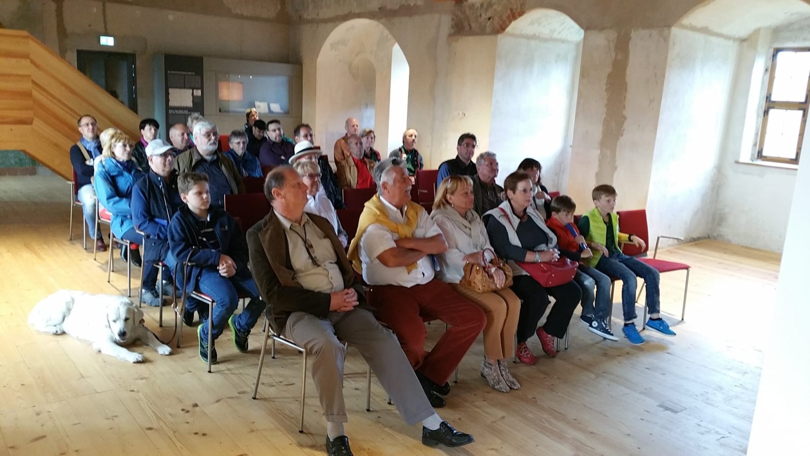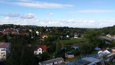 Es würde diesen Rahmen sprengen, den Einfallsreichtum der Gefangenen, gepaart mit Wagemut, Ingenieurswissen und britischem Humor darzustellen, mit dem die Insassen des OFLAG IV C versuchten, auszubrechen und die deutschen Bewacher immer wieder aufs Neue narrten. Frau Schubert gab diese Stories auf eine Weise wider, dass wir wiederholt in lautes Gelächter ausbrachen. Soweit wir noch Luft hatten, denn es waren 110 Stufen bis in den Turm zum Nachbau des „Colditz Glider“.