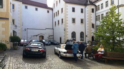 Das Klosterhotel hatte zudem offensichtlich Verbindungen zu Petrus, dem Jaguar-Fahrer, denn nur am Tag vor unserer Ausfahrt war das Wetter unseren schönen Autos angemessen. Dabei mussten wir doch den Termin einen Tag nach hinten verlegen, da am ursprünglichen Datum das Hotel durch mehrere Hochzeitsgesellschaften belegt war. Glück für uns!