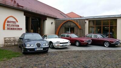 In Höfgen galt es dann nach ausgiebigen Benzingesprächen auf dem Parkplatz Abschied zu nehmen von den Jaguar-Freunden aus der Region, die nicht im Hotel Kloster Nimbschen übernachten wollten. Wir freuen uns jetzt schon auf das Wiedersehen!