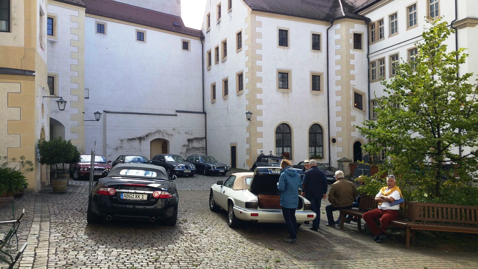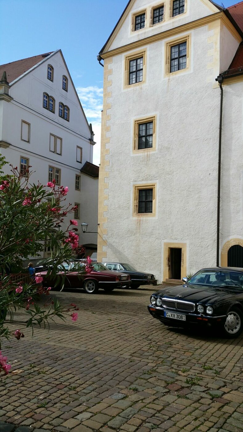 Es fanden sich sieben Teams aus der J.A.G. ein, plus die tolle Truppe jaguarstyle.de von André Lagois, der von Chemnitz aus ebenfalls schöne Veranstaltungen organisiert. So wurde der Schlosshof von wunderbaren Youngtimern – XJ40, X300,X308, S-Type, XJS – verziert, plus die Highlights XJC und Pauline, der vom Jahrestreffen wohlbekannte MK4.
