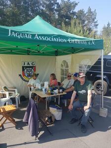 Selbst aus dem "hohen Norden" durften wir Clubfreunde begrüßen, und so bedanken wir uns bei allen, die in Linthe waren, für den Support und die tolle Gemeinschaft! Das Engagement unserer Freunde war toll, sei es mit Tischen, Stühlen, Teilen einer Terassenbaustelle, damit der Pavillon stehen bleibt, Getränken, Keksen, und einer Menge Spaß! Hatten gute Gespräche und mindestens ein neues Mitglied. Abenteuer gehören dazu, und wir hoffen, dass Gabi und Peter ihr Outdoorerlebnis gut verkraftet haben - sie mussten nach dem Defekt der Lichtmaschine mangels Abschlepper im E-Type auf freiem Feld übernachten... Familie Majchrzak, bei der wir uns besonders für 3 Tage "Standdienst" bedanken, schrieb uns: "Wenn man sieht, wie sich kleine Kinder freuen, mal in einem Jaguar zu sitzen und das Lächeln der großen Kinder beim Anblick des Motors-"