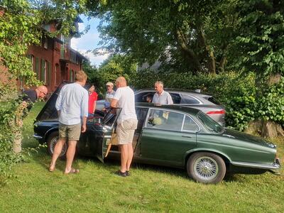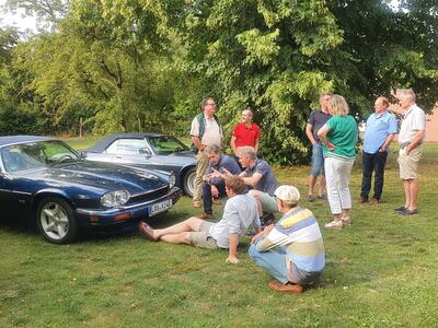 Benzingespräche, fröhliche Stimmumg, Badewetter und der Sektionsleiter am Grill...