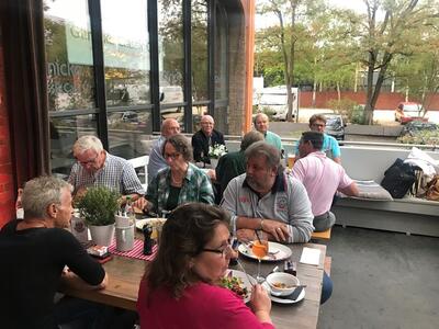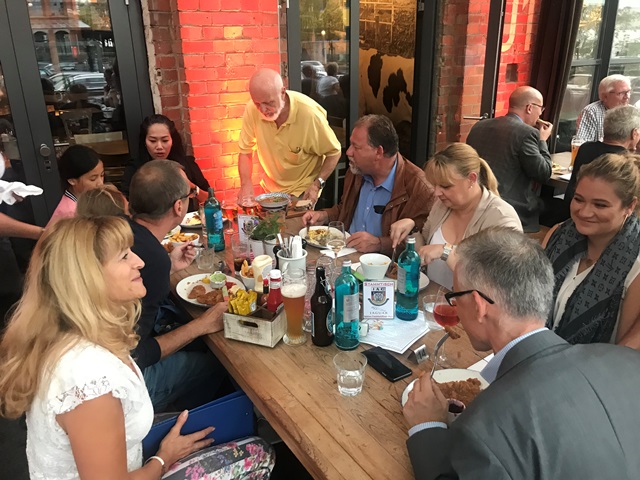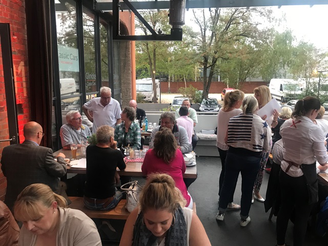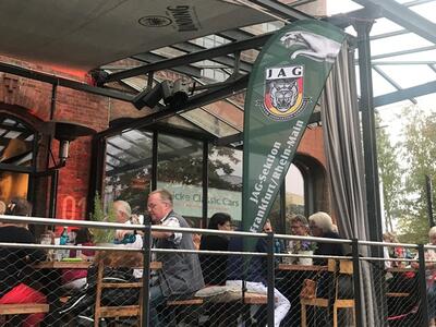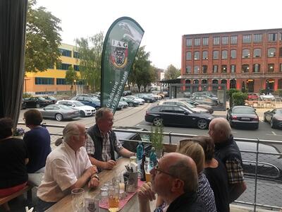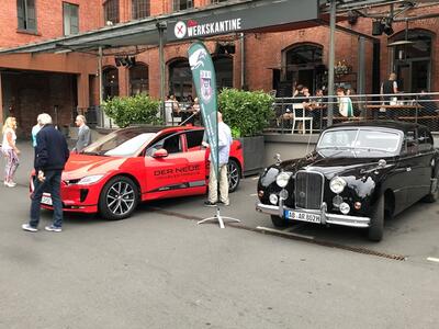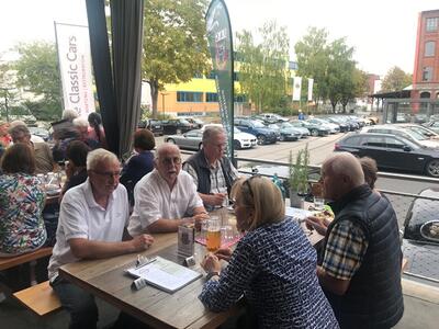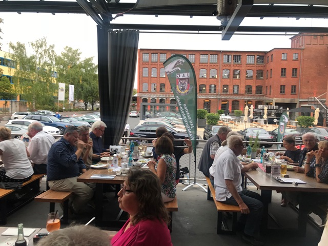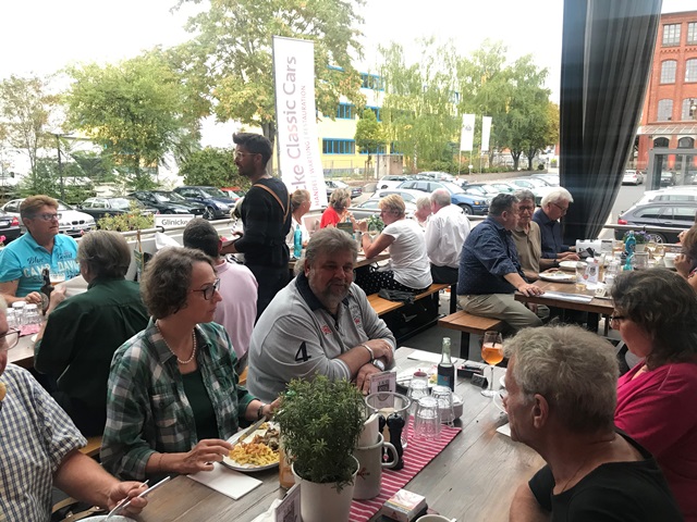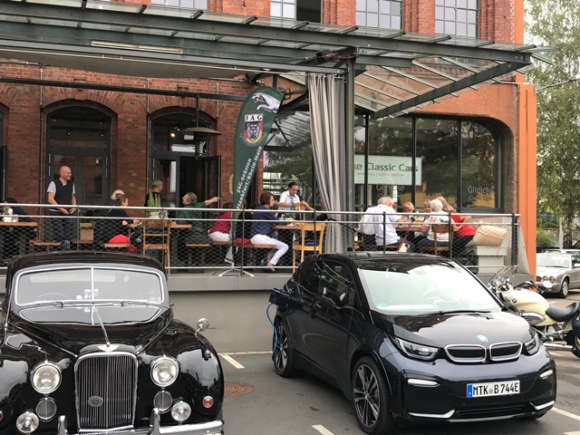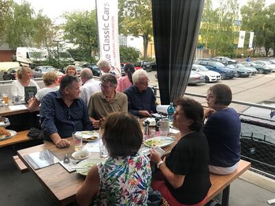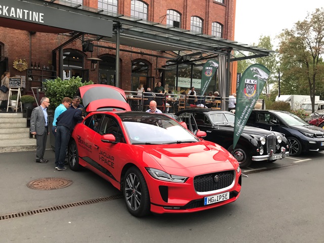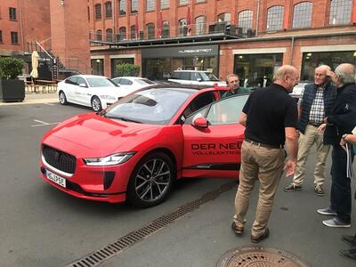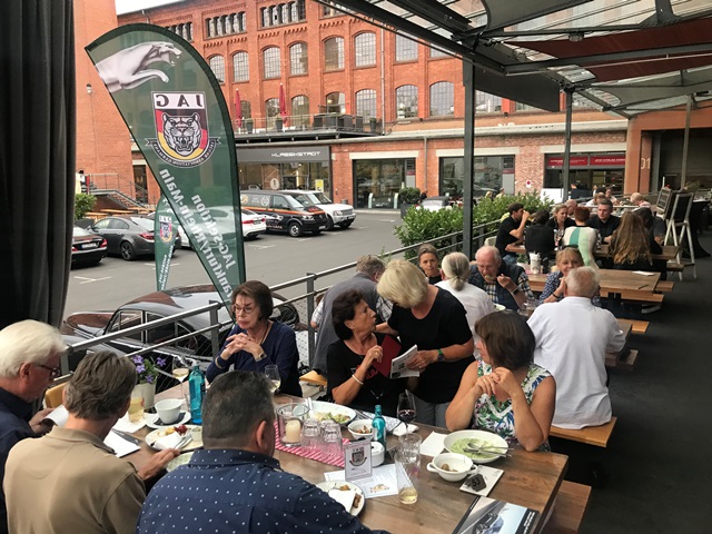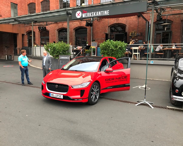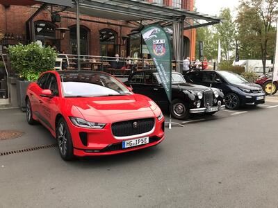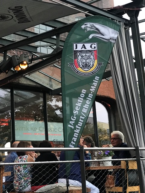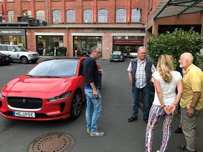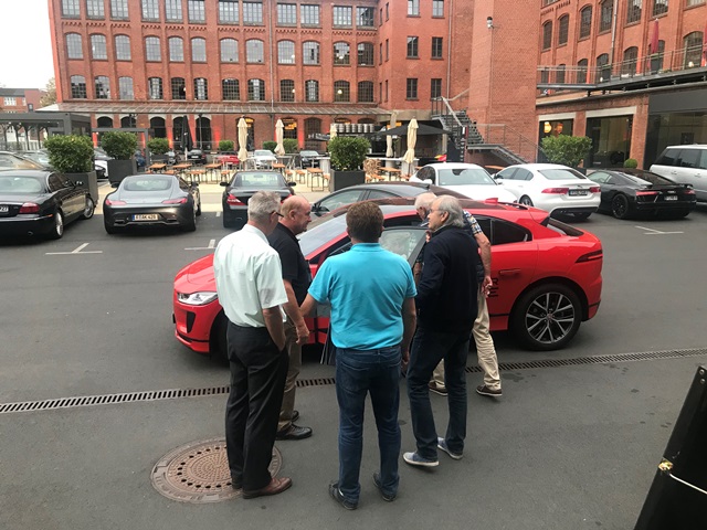 Und wieder ein Rekordstammtisch: 51 Mitglieder und Interessenten unseres Jaguarclubs fanden sich an einem milden Abend auf der Terrasse der Werkskantine in der Klassikstadt in Frankfurt ein. Es wurde allerdings auch etwas Besonderes geboten, denn unser Clubmitglied, Vito Mandurino, selbst hauptamtlicher Jaguarmitarbeiter, hatte den neuen vollelektrischen Jaguar I-Pace mitgebracht und stellte ihn uns zum Ausprobieren zur Verfügung, dafür herzlichen Dank lieber Vito!