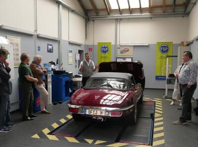 Ein gutes Glas Weißwein half den Jaguarfreunden, den Berufsalltag abzuschütteln und in diese Welt einzutauchen. Da die meisten Gutachten für die Versicherungen für den Fall des Totalverlustes (z.B. Diebstahl) dienen, riet der Experte zu prüfen, ob die Versicherung nur den Marktwert, den Wiederbeschaffungswert oder auch den Wiederaufbauwert absichert. Mit dem drastischen Beispiel einer Kofferraumhaube eines Porsche 356, die sich durch einen Werkstattfehler während der Fahrt öffnete und zu einem verzogenen Karosserie des wertvollen Fahrzeuges führte, erläuterte Ebrecht die Allgefahrenversicherung, die über die Vollkaskoversicherung hinaus auch Schäden aus dem normalen Betrieb eines Fahrzeugs abdeckt. Ausgeschlossen sind nur Schäden aufgrund des gewöhnlichen Alterungsprozesses oder thermischer Probleme.
