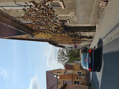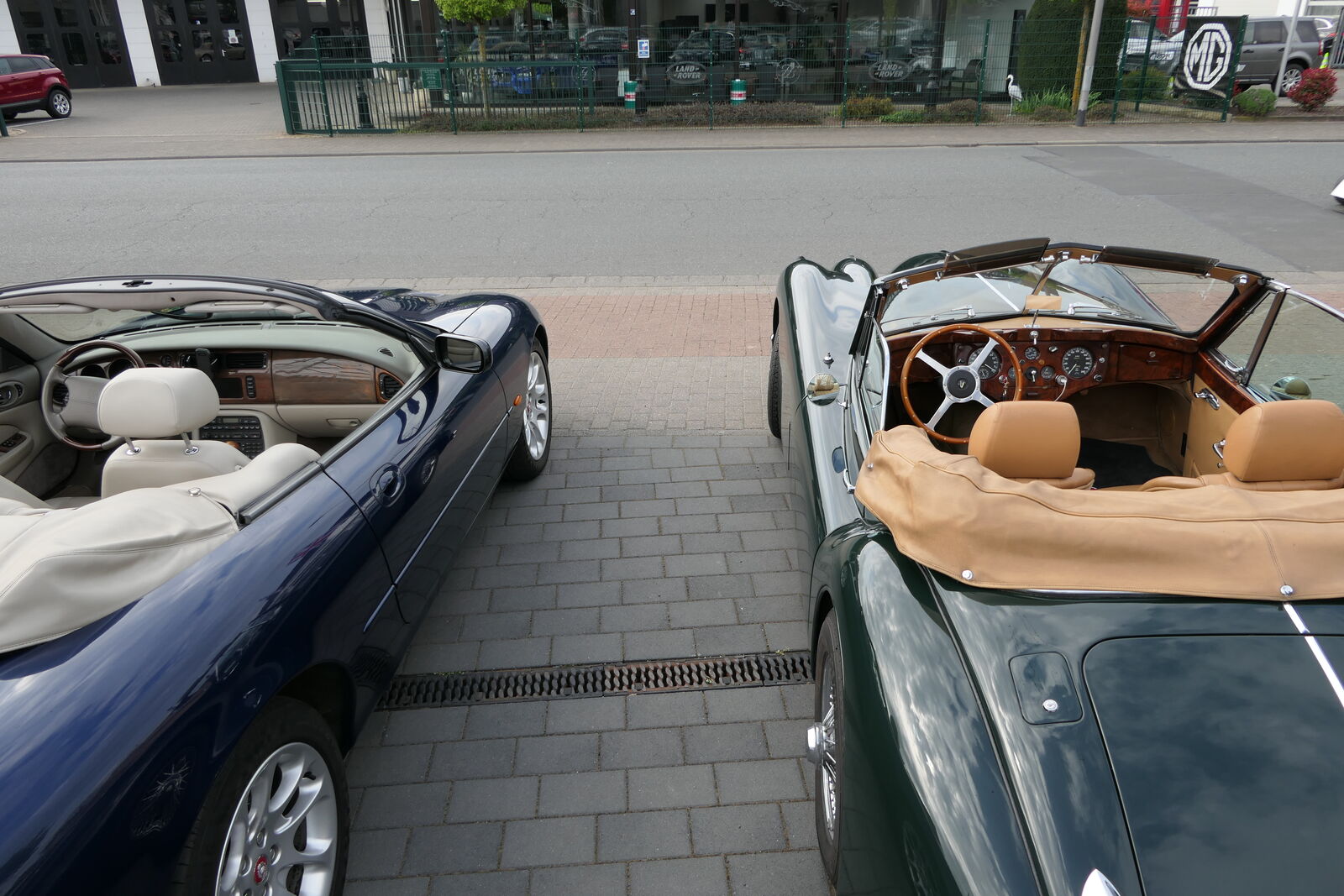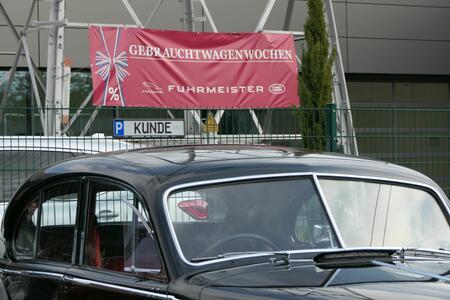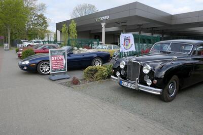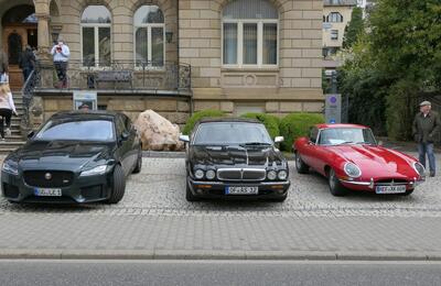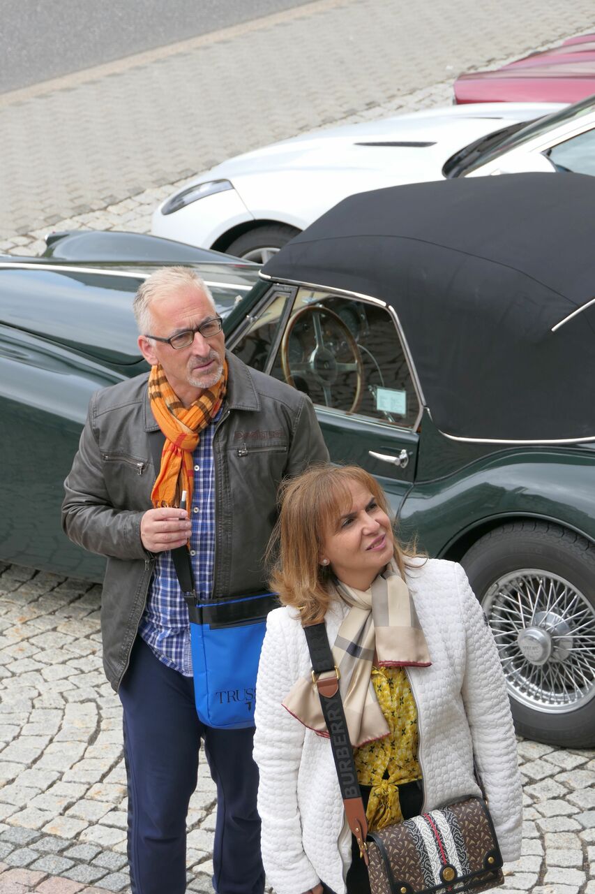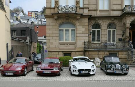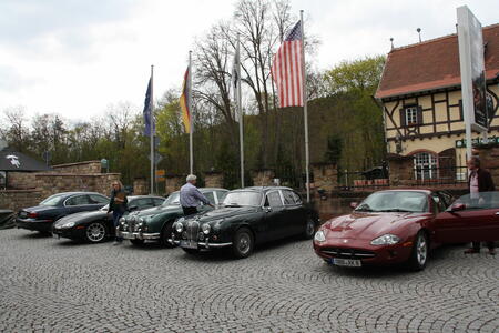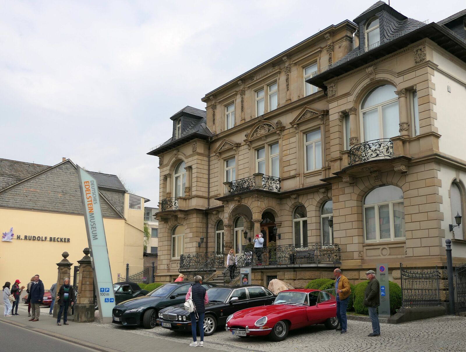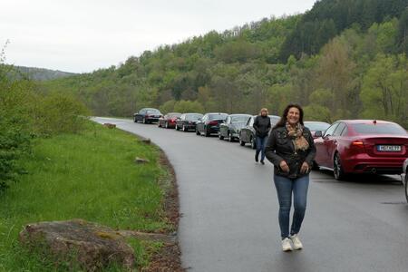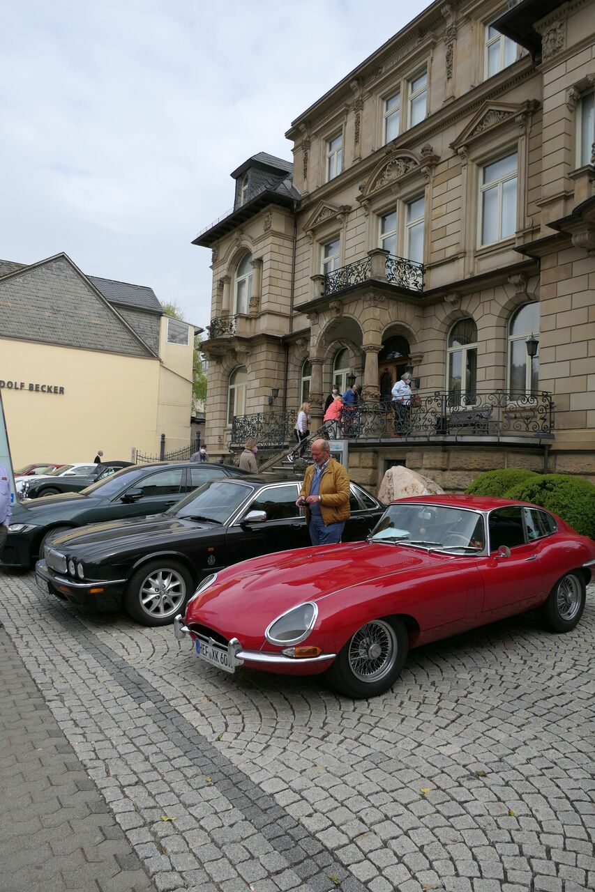 Die nächste Tour führte uns dann nach Idar-Oberstein ins Deutsche Edelsteinmuseum. Dabei auch durch das militärische Sperrgebiet bei Baumholder. Landschaftlich sehr schön, kein Verkehr, wunderbar zu fahren, aber in diesen Zeiten wieder etwas beklemmend, wenn man bedenkt, dass solch Einrichtungen womöglich wieder wichtig werden könnten. Für den Stopp am Museum hatte man mir am Telefon zugesagt, wir bekämen vor dem Museum einige Parkplätze reserviert und wahrscheinlich könnten wir auch einige Fahrzeuge direkt hinter dem Museum parken. Das ist aber vor Ort auch gar nicht schlimm, es gibt 50 m weiter einen öffentlichen Parkplatz, der zumindest sonntags fast leer ist. Tatsächlich waren alle Parkplätze vor und hinter dem Museum für uns reserviert. Siehe auch die Bilder! Nur das „Führungsfahrzeug“ stand dann alleine auf dem öffentlichen Parkplatz….
