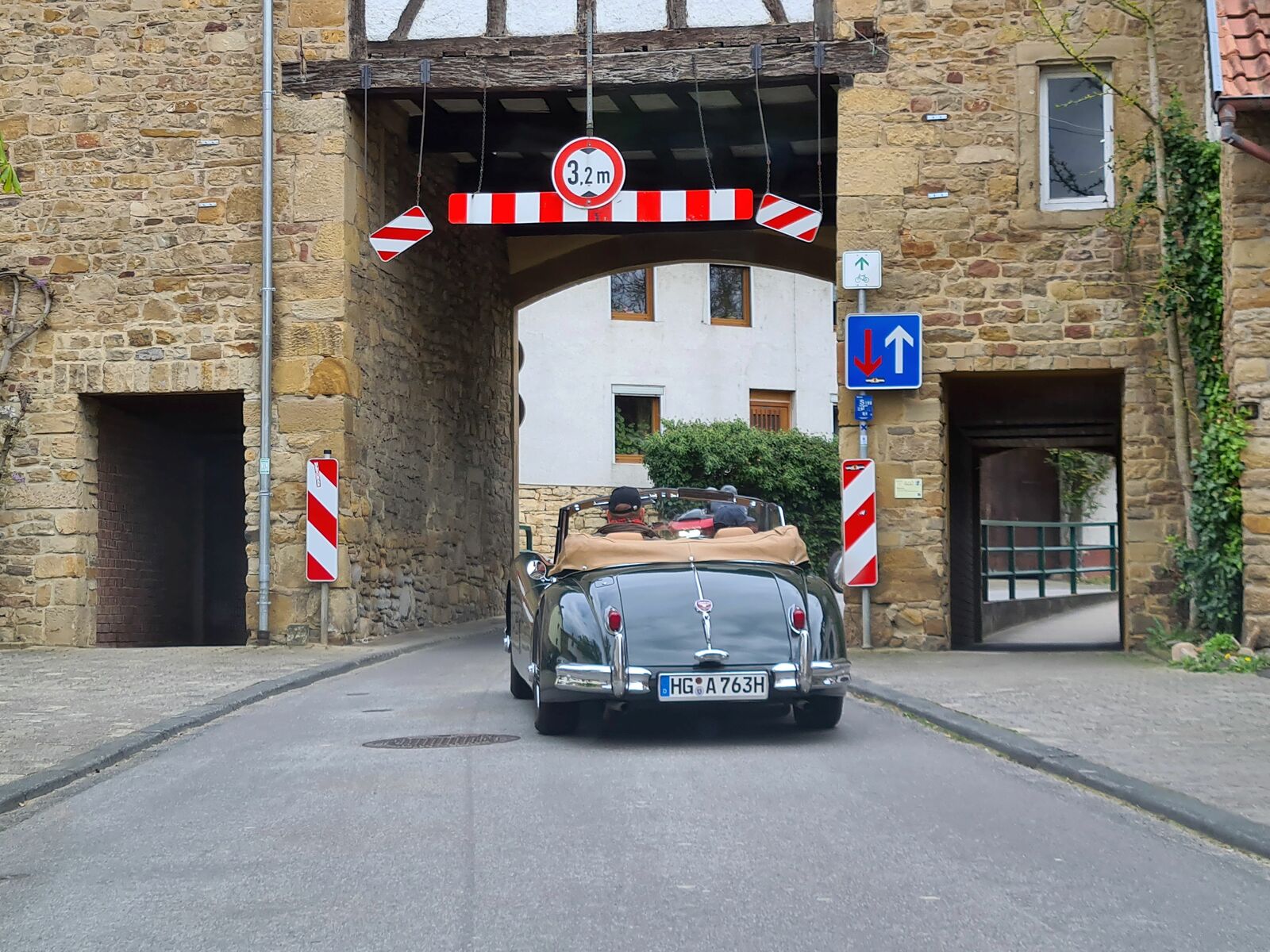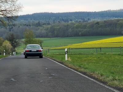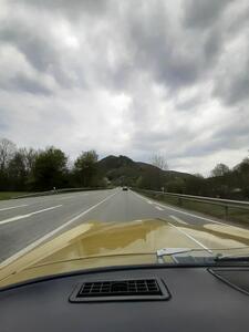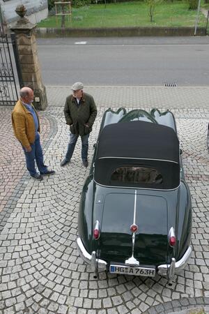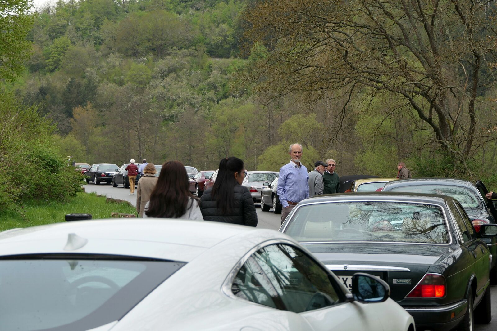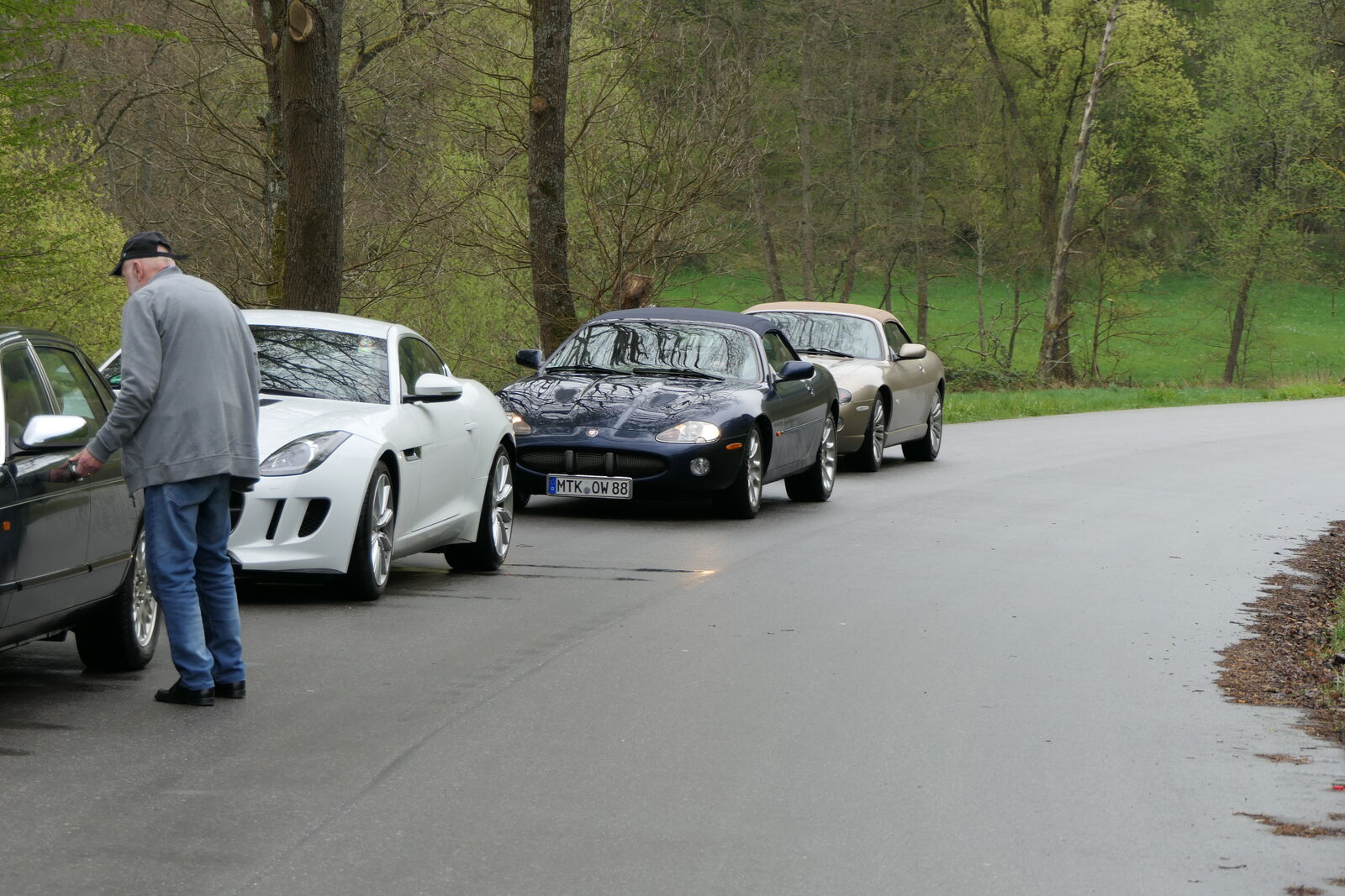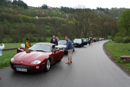Sonntagmorgen beim Frühstück: Es regnete leicht, beim Start, schon um 09:30h, nieselte es nur noch ein wenig, die Cabrios blieben zu. Aber bereits gegen 10:20h beim ersten Halt zum Sammeln, war es wieder trocken und das blieb auch den restlichen Tag so. Also – nochmal gutgegangen….