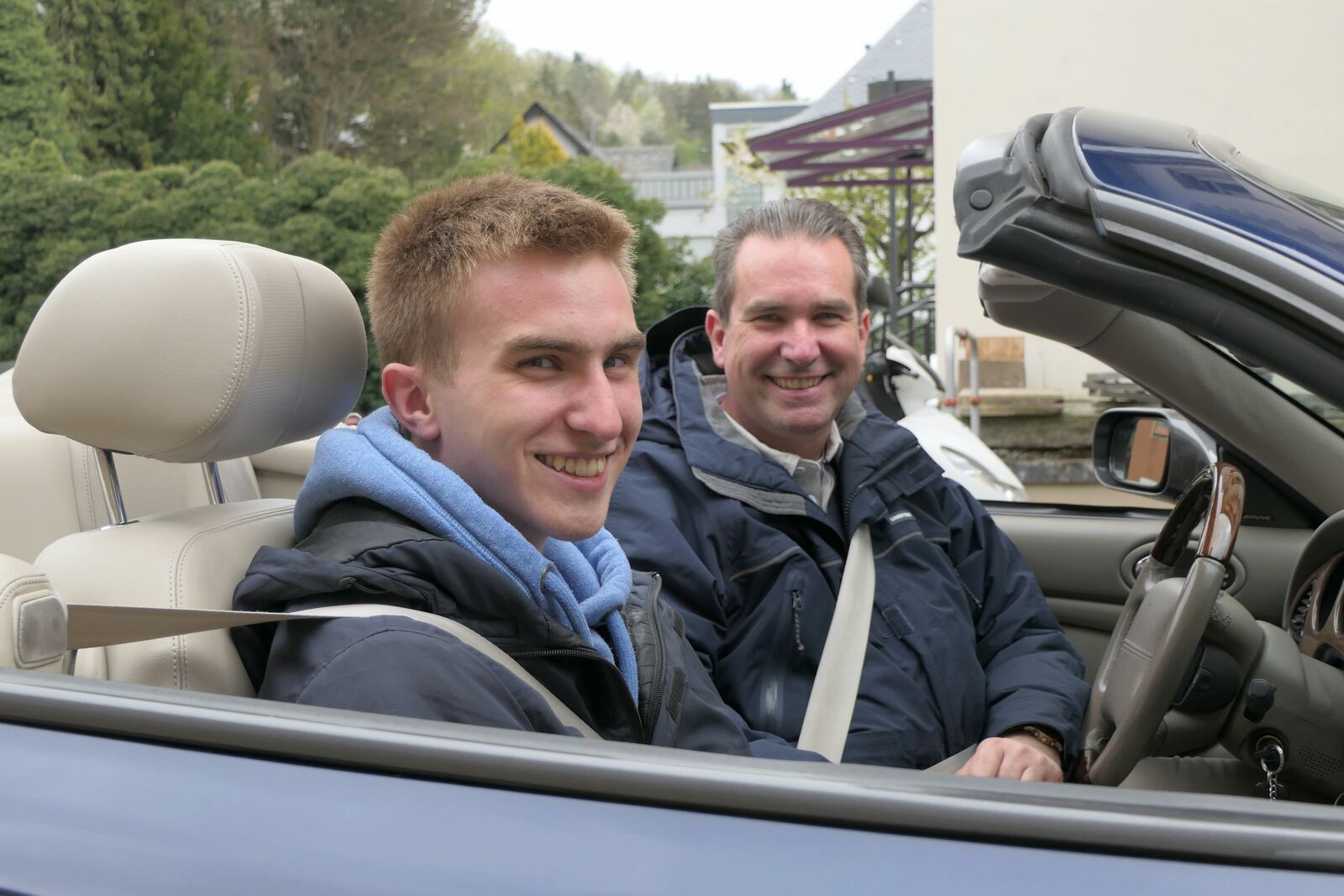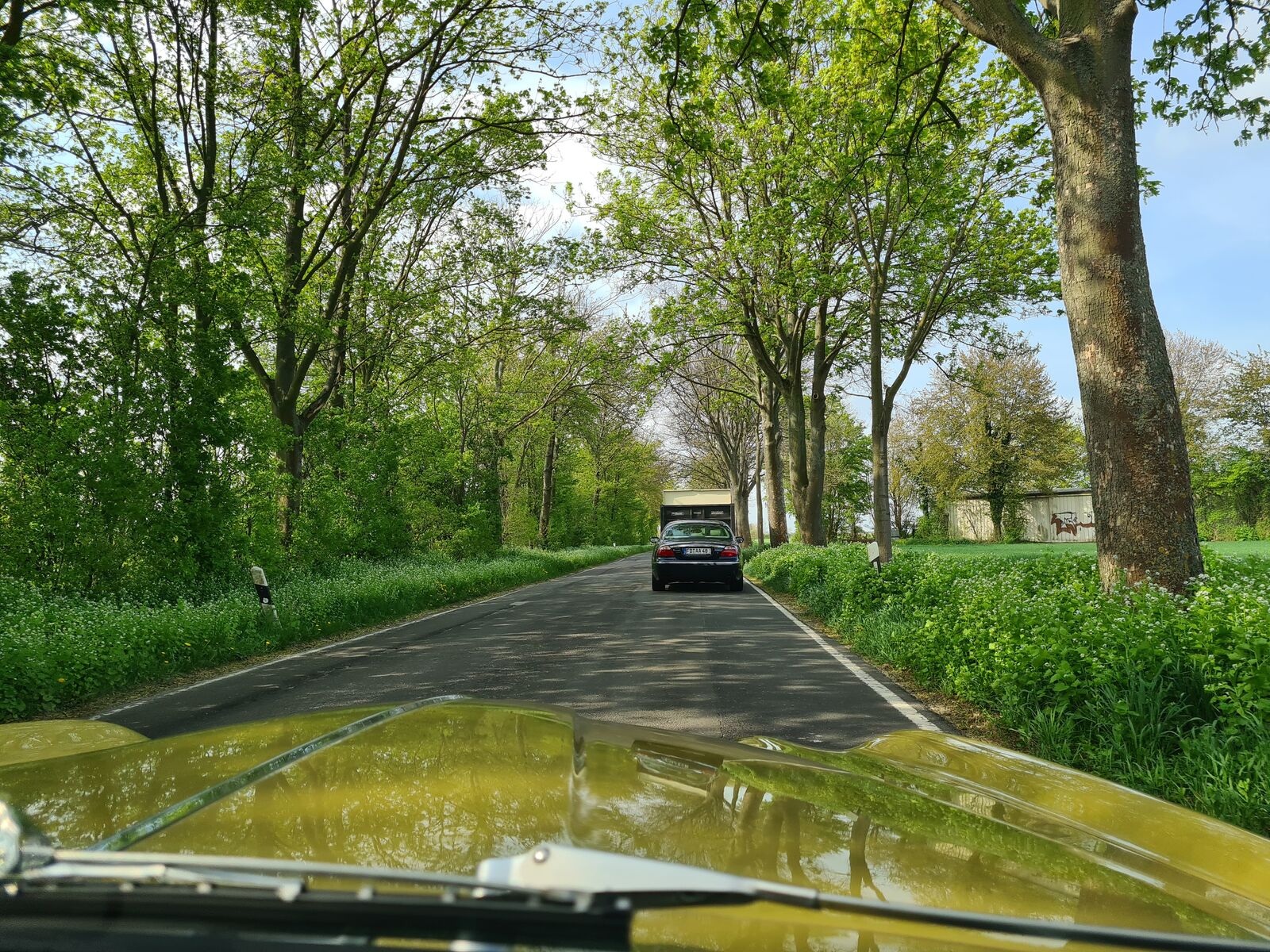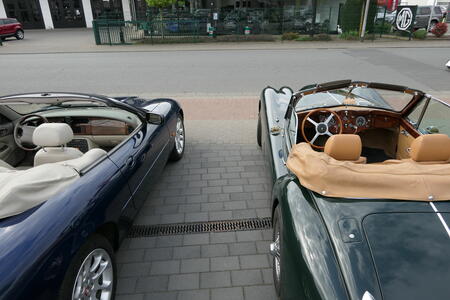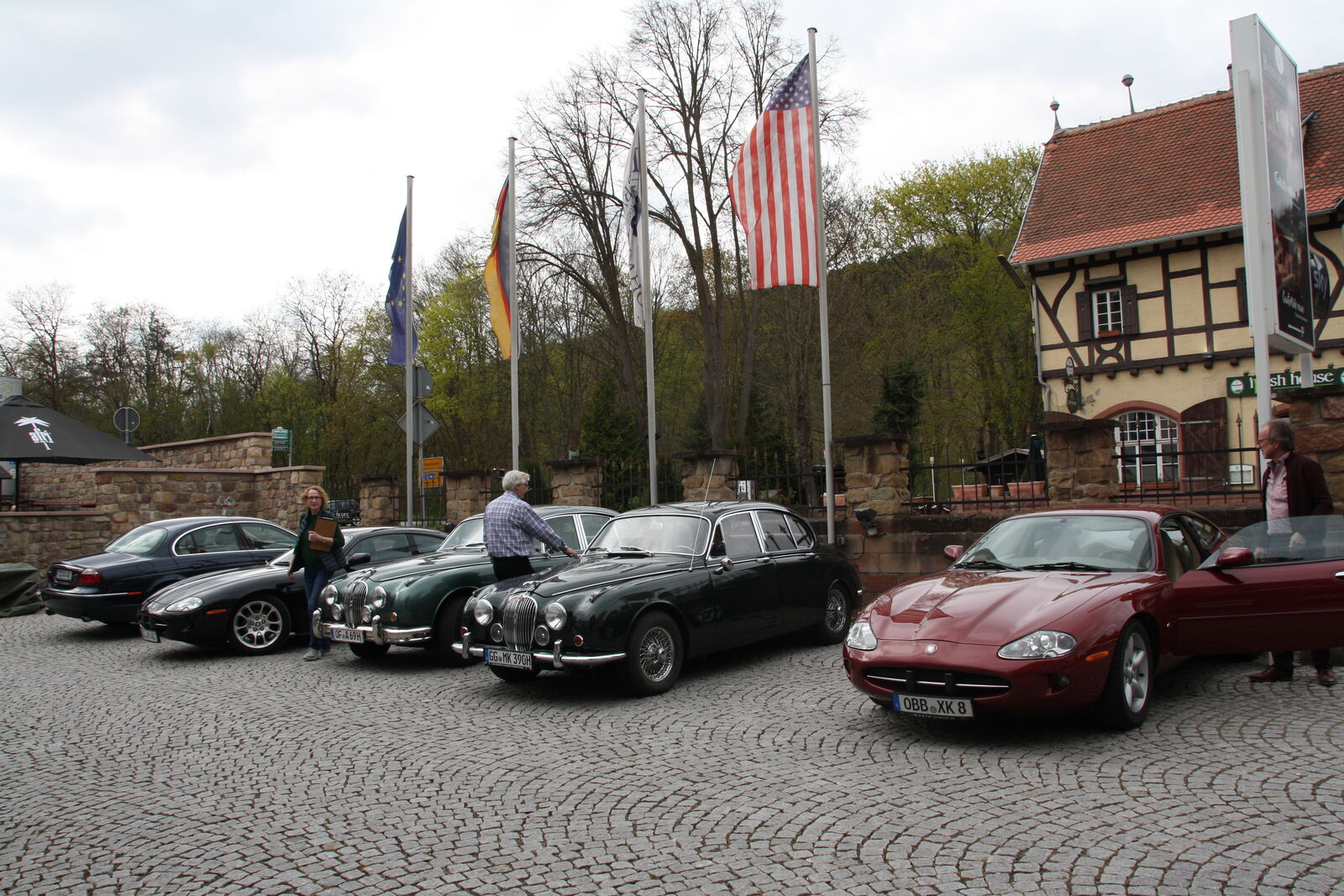 Sonntagmorgen beim Frühstück: Es regnete leicht, beim Start, schon um 09:30h, nieselte es nur noch ein wenig, die Cabrios blieben zu. Aber bereits gegen 10:20h beim ersten Halt zum Sammeln, war es wieder trocken und das blieb auch den restlichen Tag so. Also – nochmal gutgegangen….