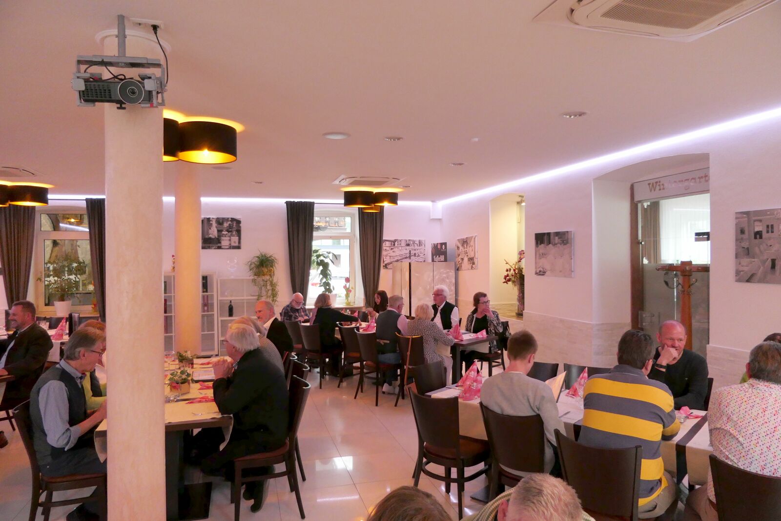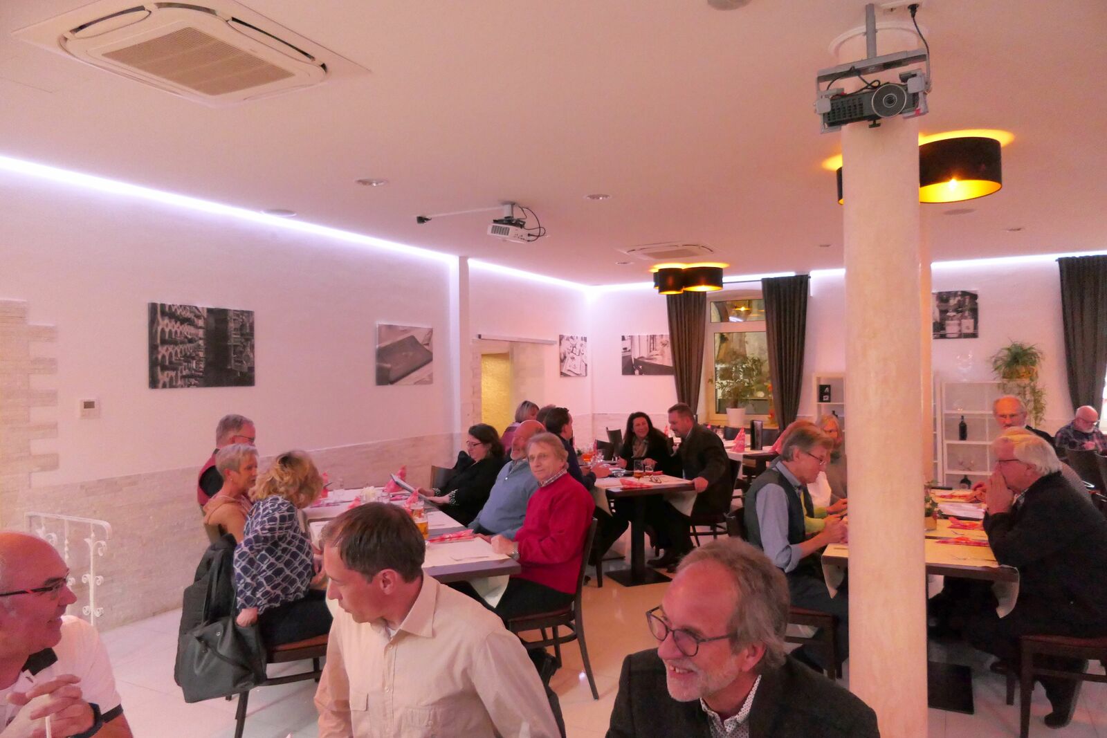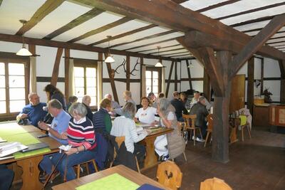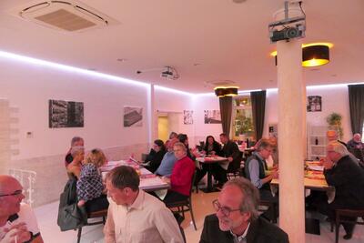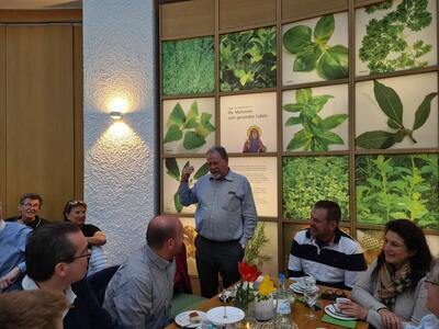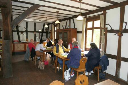 Abends dann waren wir zusammen mit einigen JAG-Mitgliedern der Sektion Saar-Pfalz zum gemeinsamen Abendessen angemeldet. Zitat unseres Sektionsleiters: „Wenn wir schon in fremden Regionen jagen (wildern), dann können wir uns ja auch mal gemeinsam zusammensetzen“. Dafür bekamen wir einen großen Saal mit Tischgruppen zur Verfügung, so dass wir die jeweiligen Mitglieder auch etwas „mischen“ konnten. Sehr schön. So konnten wir auch andere Mitglieder aus einer anderen Sektion mal kennenlernen. Es wurde ein sehr gemütlicher langer Abend, zumindest für uns war ja auch der Weg zum Bett nicht mehr weit.