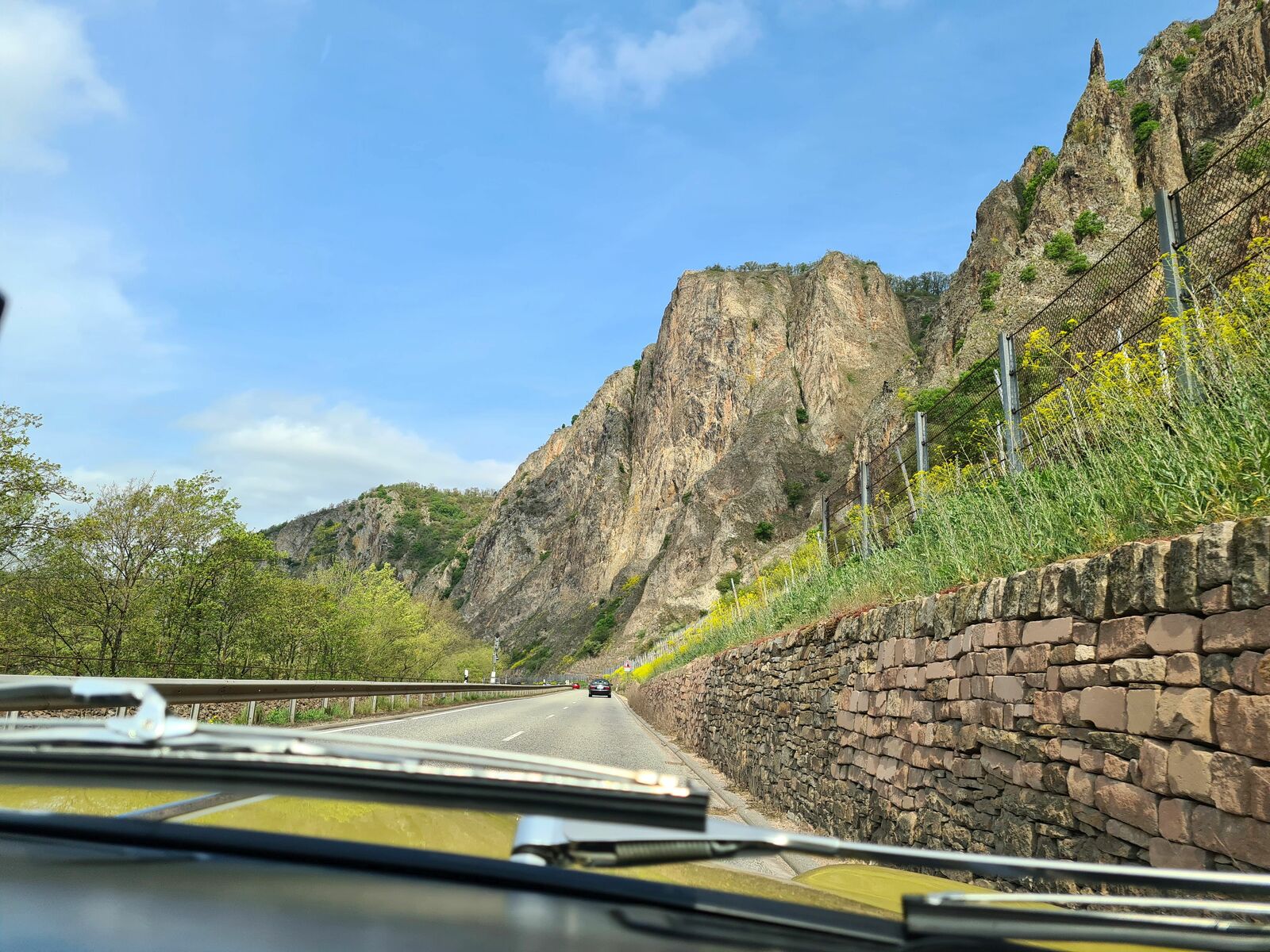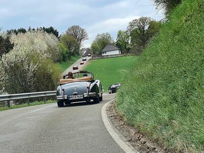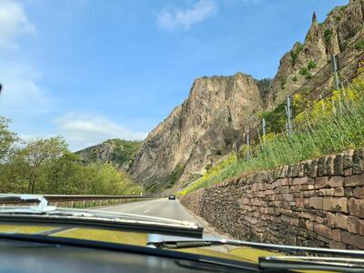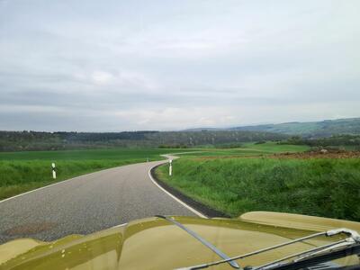Dann ging es aber wirklich auf Tour, sonnig, mit ein paar dekorativen Wolken, alle Cabrios offen, zunächst durch Rheinhessen, auf Nebenstraßen ins Nahetal und dann zum ersten Etappenziel: das Rheinland-Pfälzische Freilichtmuseum in Bad Sobernheim.