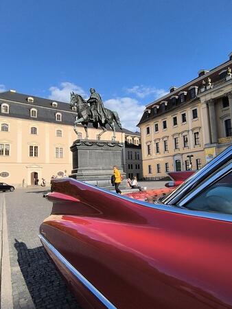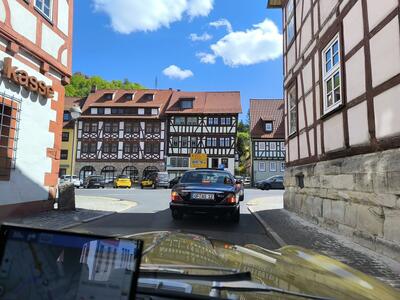 Auch hier wieder traumhaftes Wetter, so dass alle Cabrios nur in der Tiefgarage des Hotels geschlossen wurden. Wir wandelten zwei Tage auf den Spuren Goethes - zuerst im Park und der Innenstadt mit einer sehr netten Führung durch "Goethes Frau", die natürlich von einer Fremdenführerin dargestellt wurde. Sehr unterhaltsam. Am Samstag dann began der Tag mit der Besichtigung des Wohnhauses von J.W. von Goethe. Ein extremer Sammler von Kunstschätzen aller Art. Wir lernten: sparsam wir er dann doch war, viele Kopien. Nach individuellem Stadtbummel ging es nachmittags noch zum Gedenkstein an Napoleons Schlacht bei Jena und Auerstedt und den Dornburger Schlössern. Ein Genuß, bei diesem Wetter auf wenig befahrenen Straßen durch Thüringen zu cruisen.