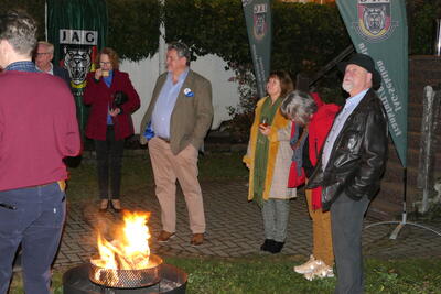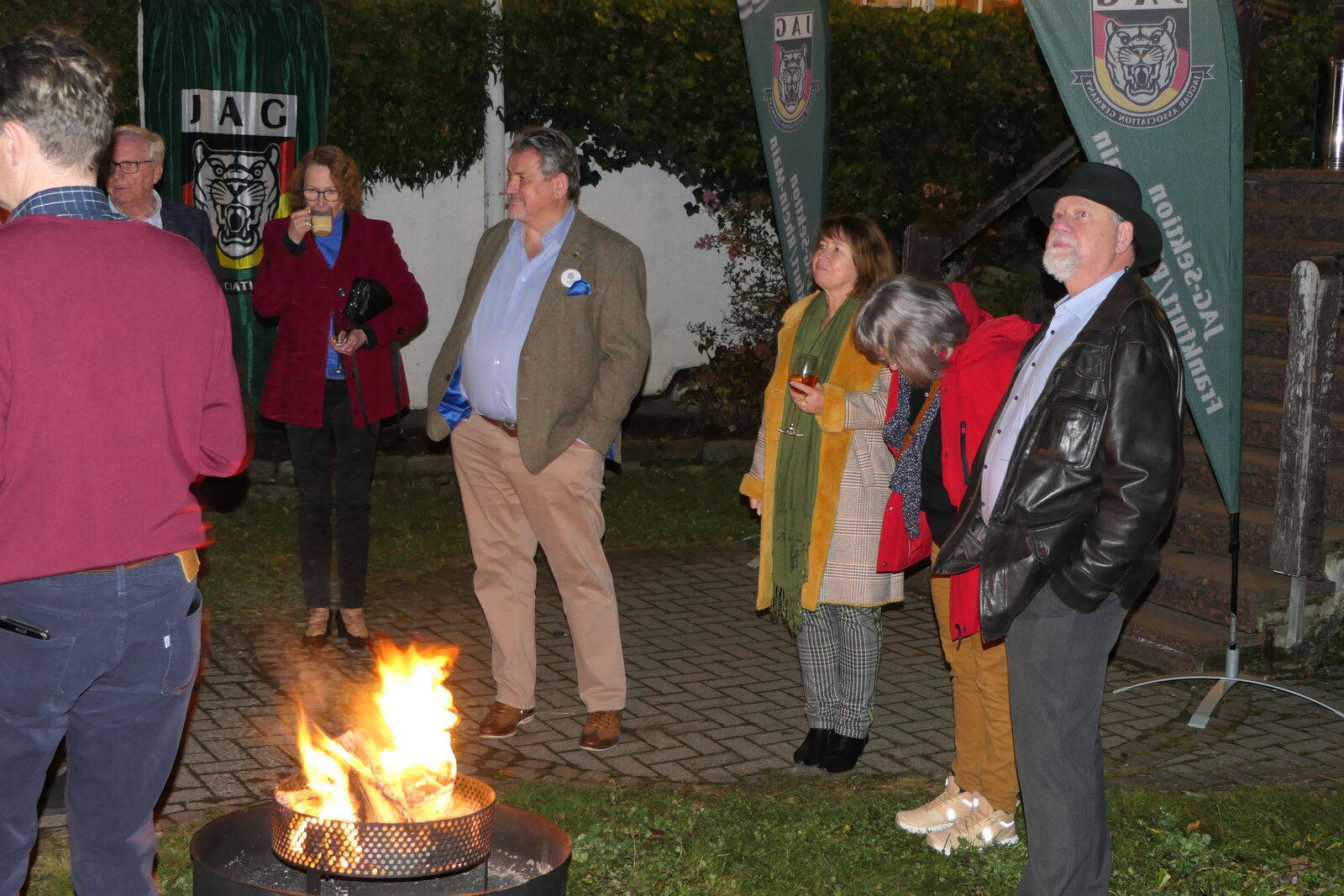 Immerhin 27 machten sich auf die Reise in den Taunus, wo unser JAG-Mitglied Anton Ochs die Gäste bei "hessischem Glühwein" (Basis Apfelwein, aber aufgepeppt) draußen am Feuer begrüßte.