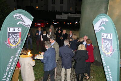 Aber schnell verzogen sich die Gäste nach drinnen, wo das abendliche Menue serviert wurde. Sektionsleiter Rüdiger Bonneß gab einen kurzen Rückblick auf die Saison und berichete aktuell von der erweiterten JAG-Vorstandssitzung an Nachmittag. Gerade die Fortentwicklung der JAG-Homepage lag ihm besonders am Herzen.