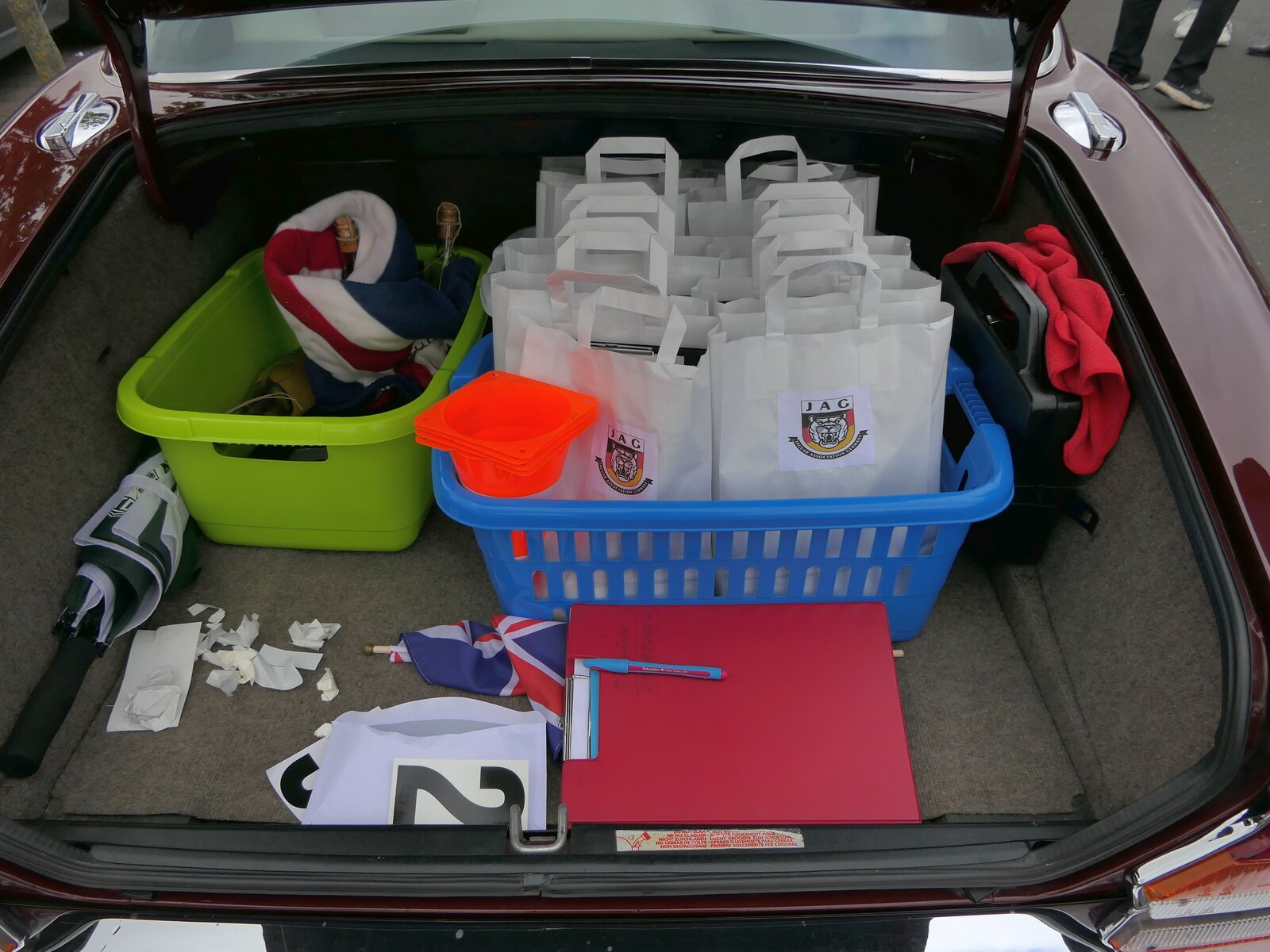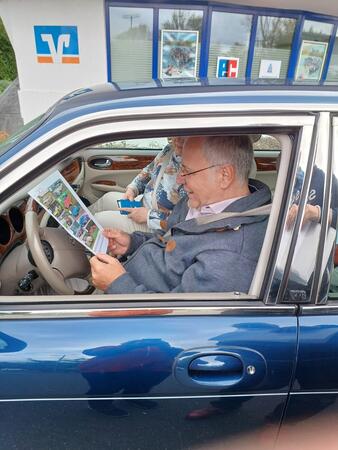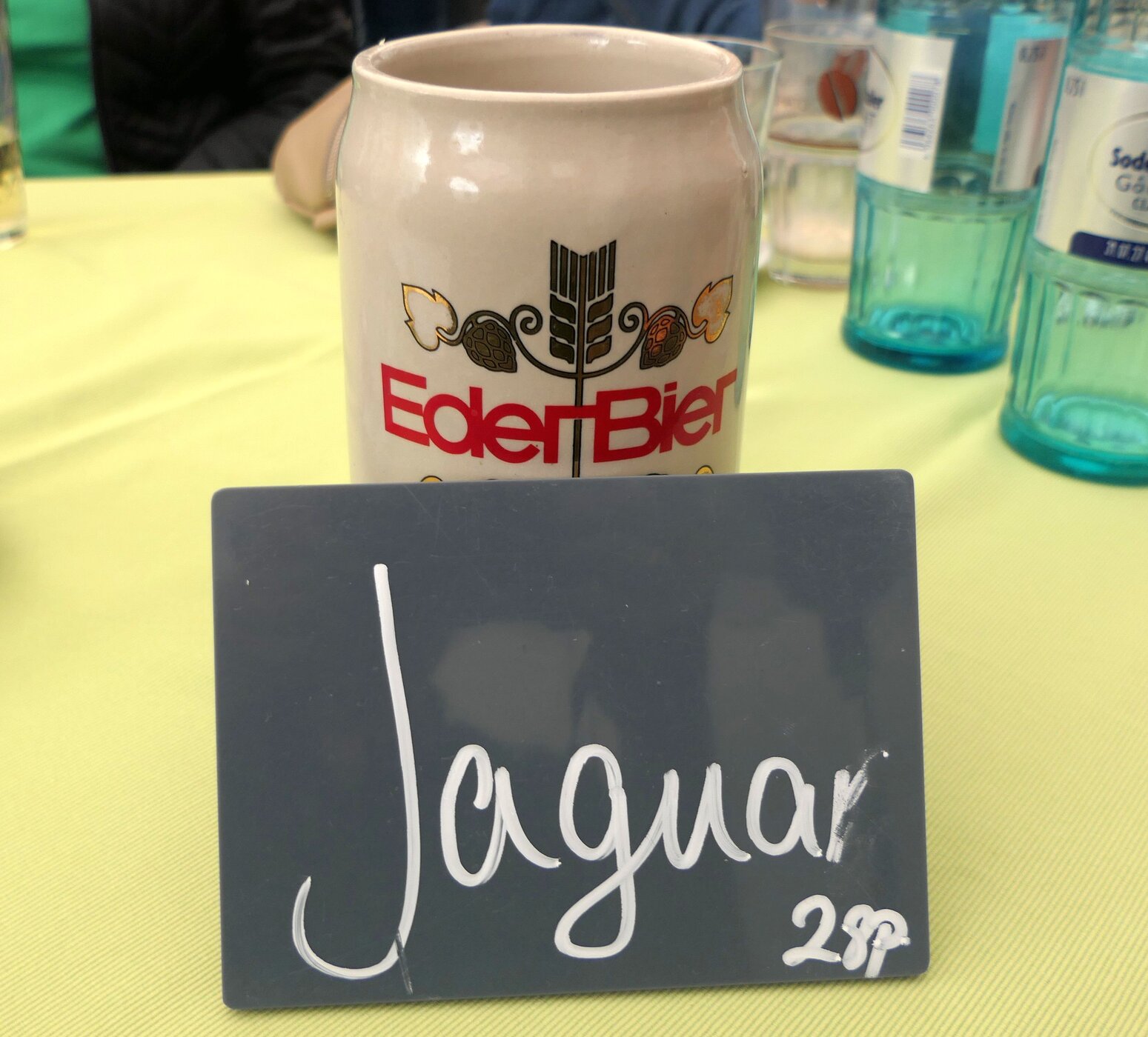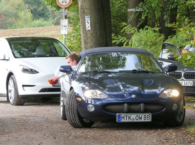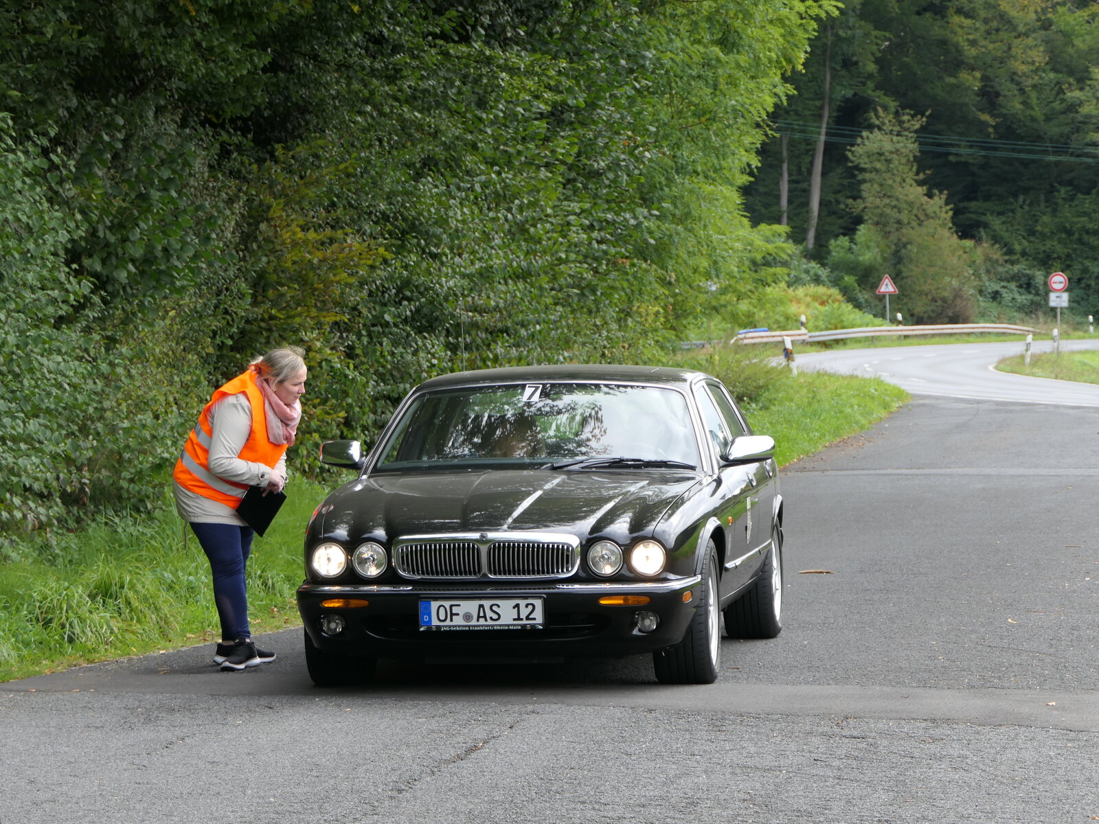 Da im Abstand von 2 Minuten gestartet wurde, war jeder unterwegs auf sich gestellt, was die Route aber auch die Suchaufgaben unterwegs betraf. Bei einem Zwischenstopp auf einem einsamen Parkplatz standen plötzlich unser Sohn Thommy und unsere Schwiegertochter Suse bereit und erwarteten doch allen Ernstes, dass die Beifahrer/in das Tier Jaguar aus einer Auswahl von ähnlich aussehenden Wildkatzen erkennen sollten. Immerhin 50 Prozent erkannten das Maskottchen unserer Autos. Die Fahrer/innen mussten ihre Fähigkeiten bei einer Einparkübung unter Beweis stellen, während der Beifahrer/in einen selbst gebastelten Papierflieger möglichst weit fliegen lassen sollte.
