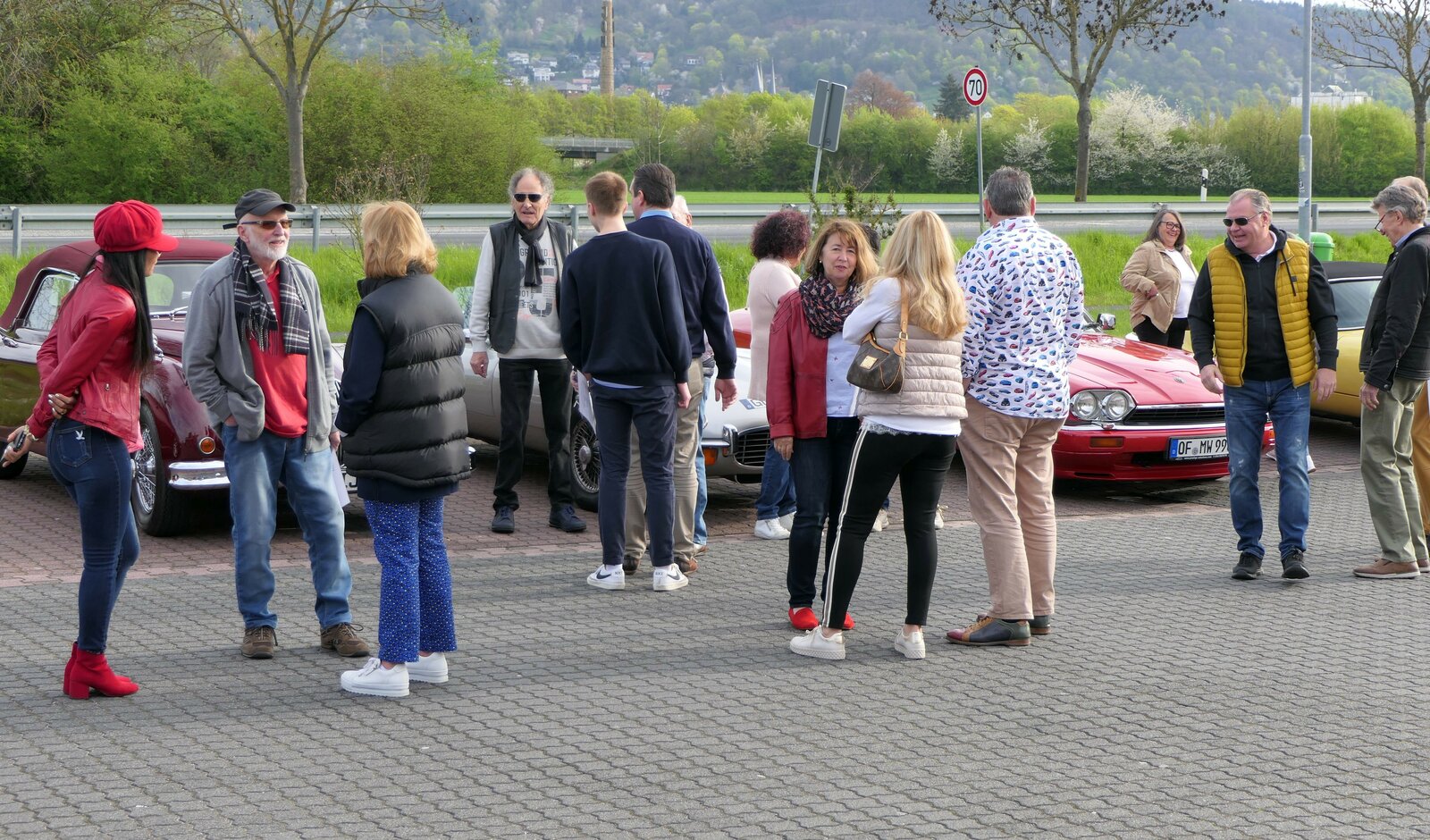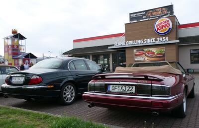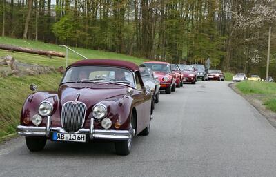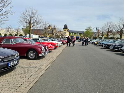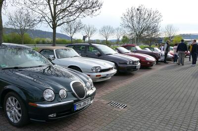 Für eine gemeinsame Anfahrt nach Wertheim hatte die Sektion Frankfurt einen Startpunkt in Gelnhausen nördlich des Spessarts angeboten. Zwölf Fahrzeuge aller Altersklassen vom XK 140 DHC aus dem Jahr 1955 bis zum X-Type Estate aus dem Jahr 2009 trafen sich in der Morgenstunde. Jedes Fahrzeug erhielt eine kurze Fahrzeugbeschreibung mit Foto und Daten, um Schaulustige mit Informationen zu versorgen. Für letzte Ver- und Entsorgung war das örtliche Burger King - Restaurant vorgesehen, dass dummerweise aber noch geschlossen war. Aber zumindest die sanitären Anlagen eines nahegelegenen Spielsalons waren schon geöffnet, sodass der Start unbeschwert erfolgen konnte.