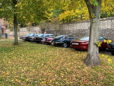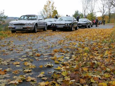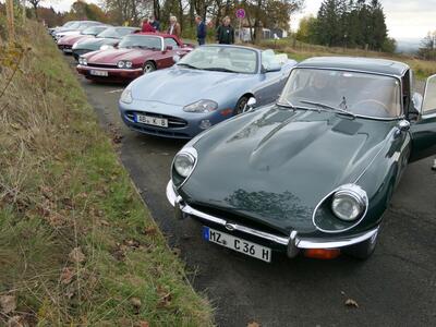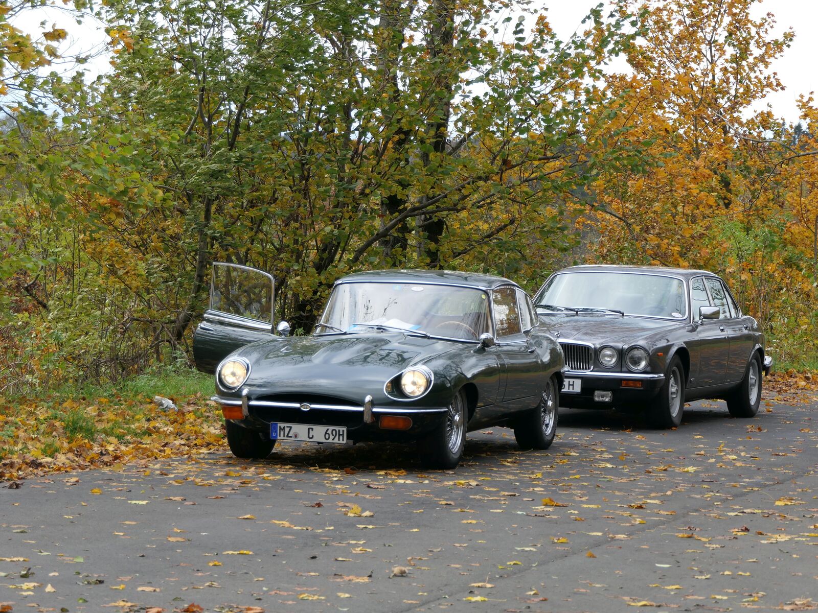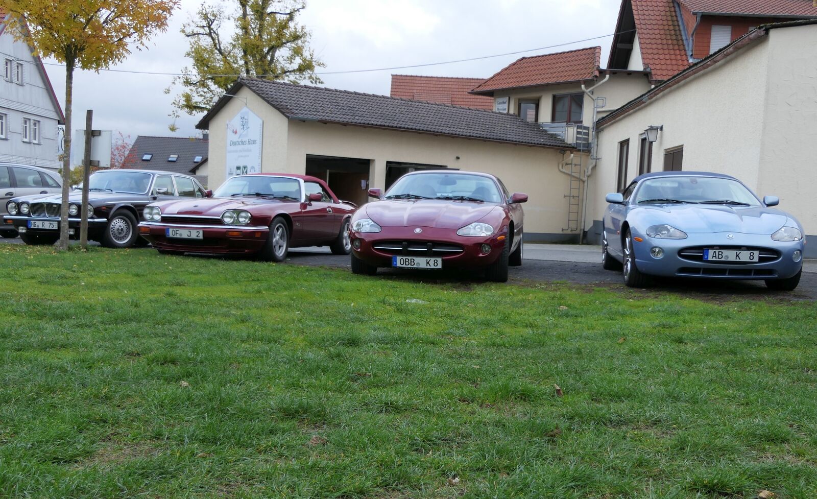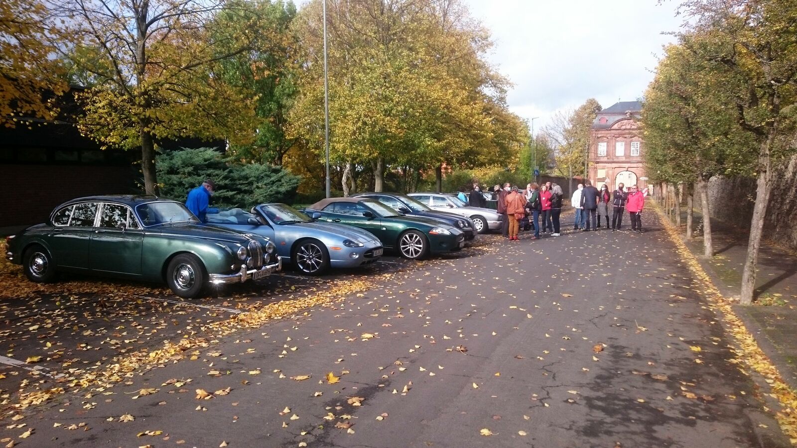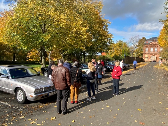 Gestartet waren wir in Ilbenstadt, im Schatten der romanischen Basilika des 12. Jhrd. mit dem Grab des heiligen Gottfrieds. Hier fanden sich 13 Fahrzeuge aus dem Hause Jaguar ein und über kleine und kleinste Straßen ging es zunächst durch die Wetterau. Der Fahrgenuss stand bei dieser Ausfahrt an erster Stelle und Petrus zeigte sich als Katzenfreund ganz von seiner großzügigen Seite, Oktobersonne, ein paar Wölkchen, angenehme Temperaturen.