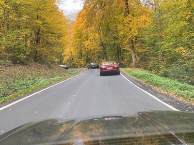 Über kleine Landstraßen 3. Grades ging es durch die fruchtbare Wetterau, durchsetzt von weiten Blicken von den Kuppen der Hügel in die herbstlich-bunte Landschaft. Dann Fahrt durch einsame Waldtäler und wieder hinaus in die freie Landschaft. Der Ort auf dem Berg - Stornfels - war bald erklommen und tief abwärts ins Tal ging es nach Einartshausen, wo wir an der Redaktion unseres „JAGMAG“, am Hof am Anger, vorbeifuhren und gedanklich einen Gruß schickten. Der Herr Redakteur war allerdings, wie vorher nachgefragt, unterwegs um Material für die nächsten Ausgaben unseres Clubmagazins zu sammeln.