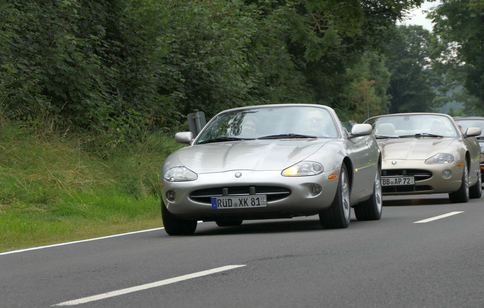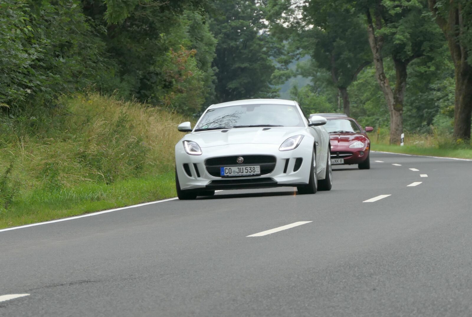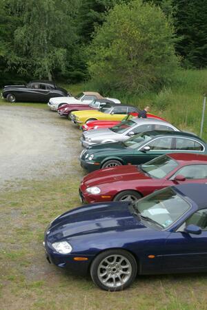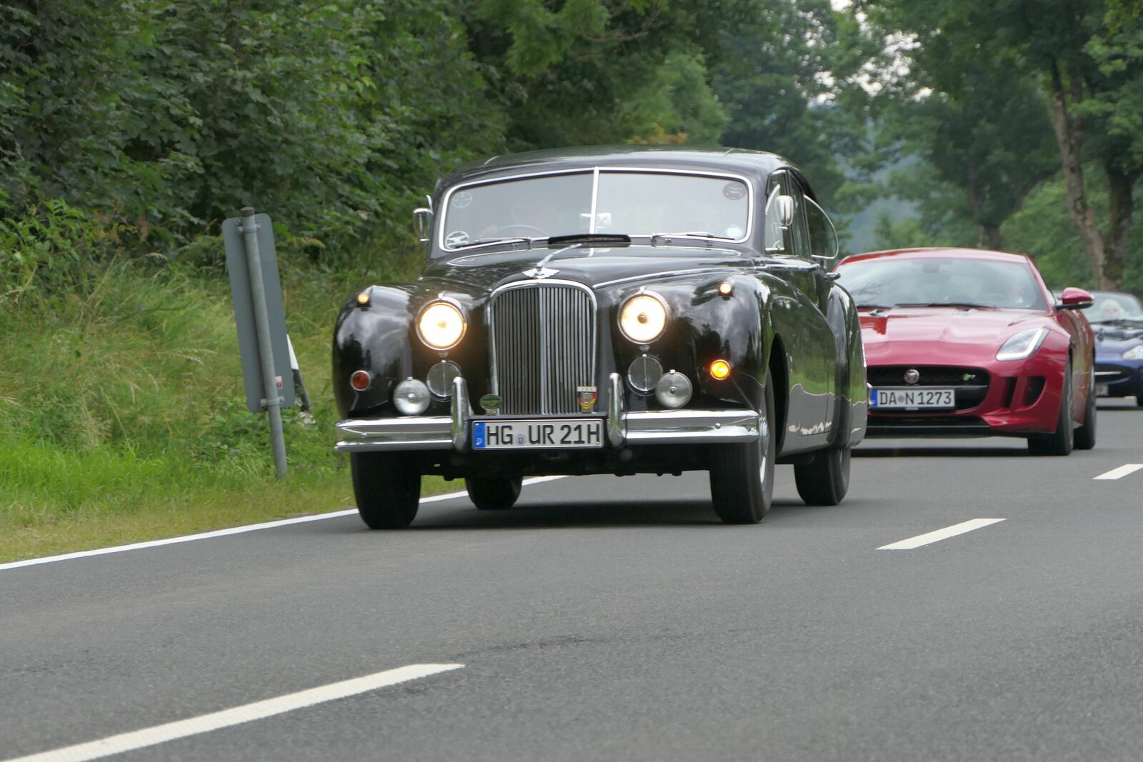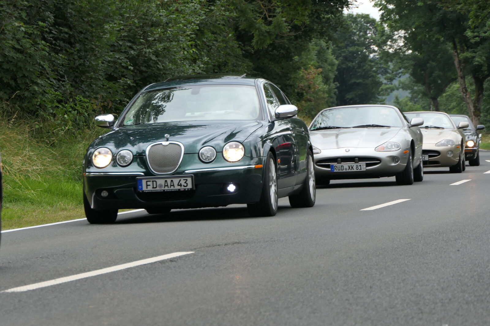 Über 20 Jaguar-Fahrzeuge hatten sich angemeldet. Ein XK 120 – Sportwagen und eine Mk 7M – Limousine aus den 50er-Jahren waren lange Zeit die ältesten Fahrzeuge. Aber bei einem Zwischenstopp stieß ein Daimler Fifteen Saloon aus dem Jahr 1935 zu der Gruppe und folgte mit munteren 70 km/h den anderen. Zahlreiche E-Types waren dabei, um deren 60-jähriges Jubiläum zu feiern. Und so zeigte eine reiche Palette von unterschiedlichen Fahrzeugen bis hin zum modernen F-Type, welch wunderbare Fahrzeuge Jaguar gebaut hat.