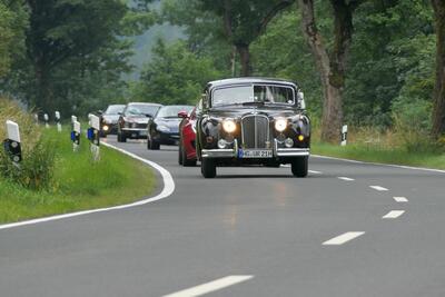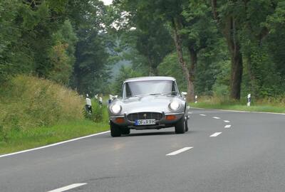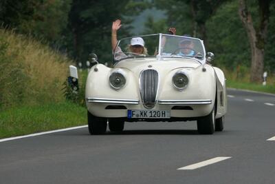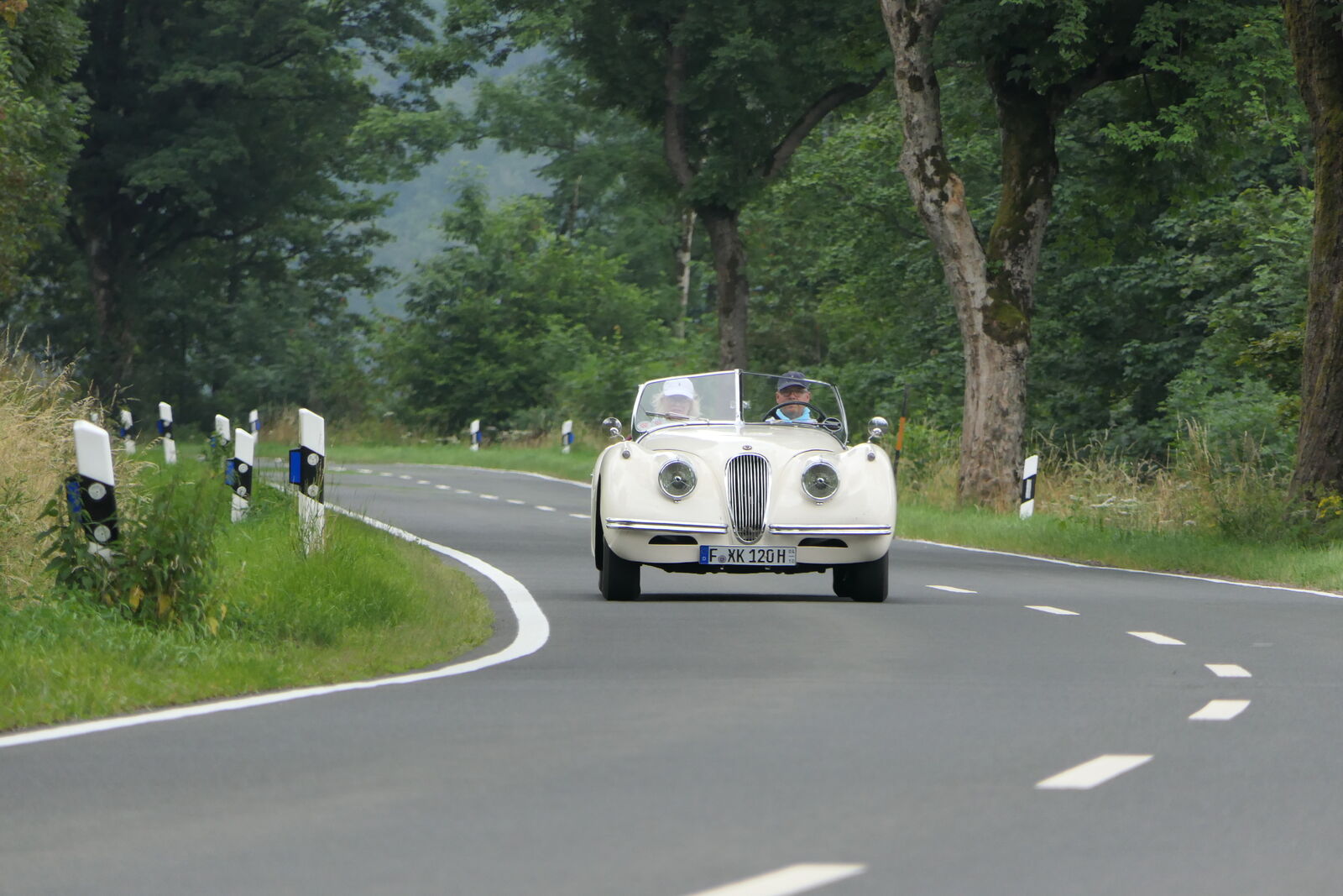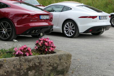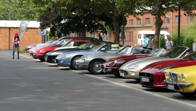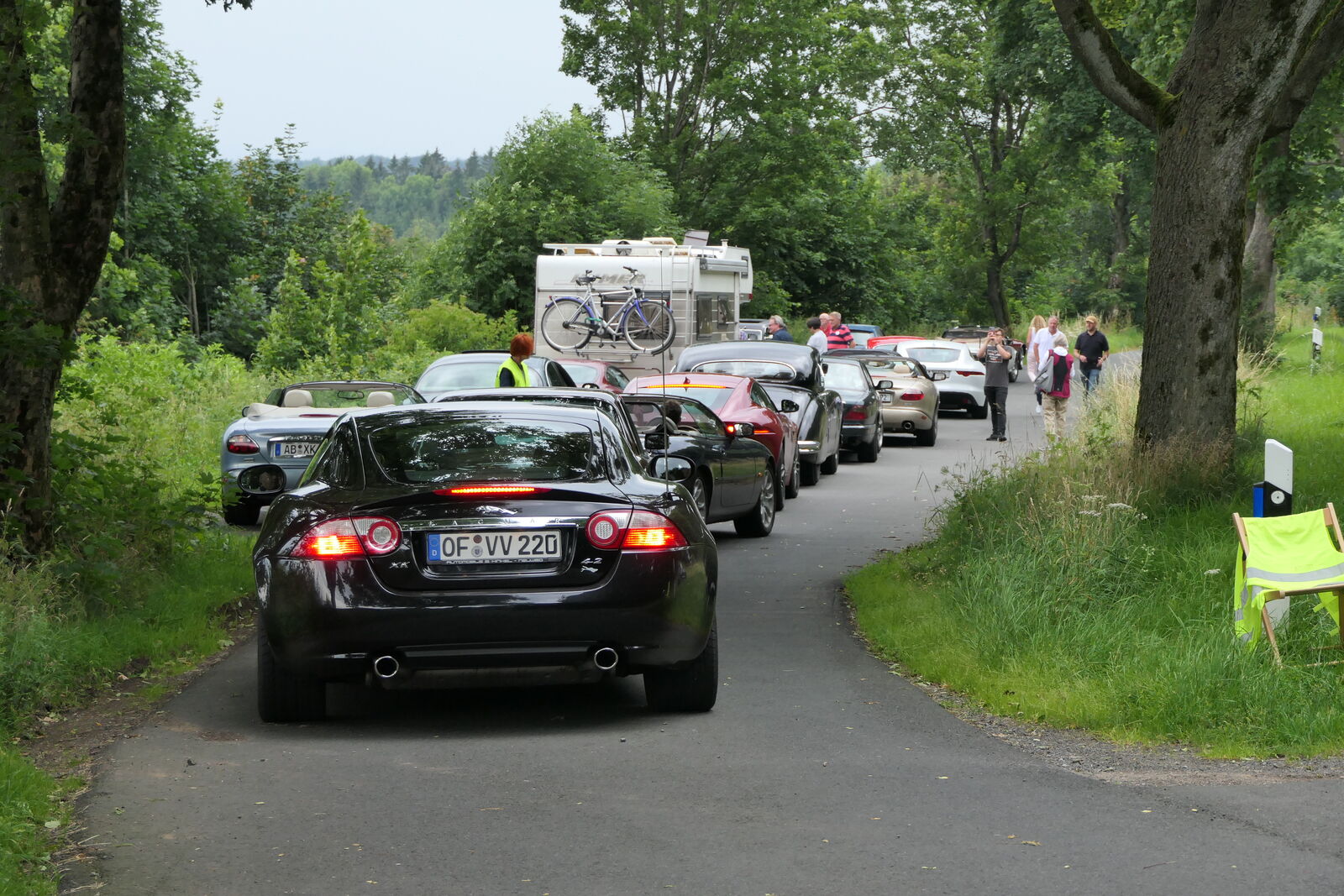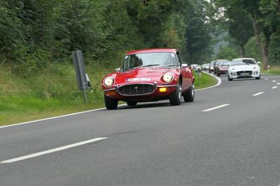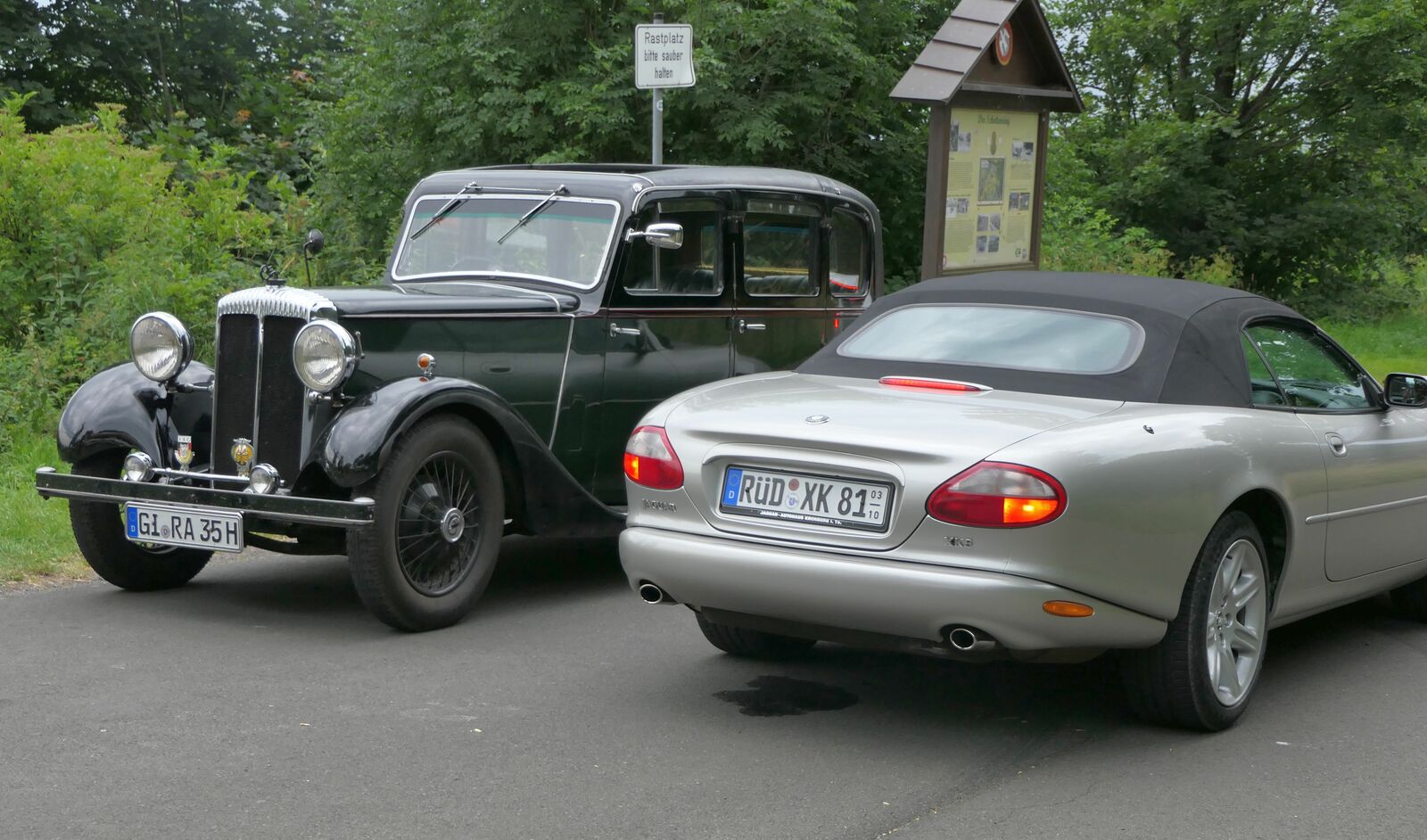 Über 20 Jaguar-Fahrzeuge hatten sich angemeldet. Ein XK 120 – Sportwagen und eine Mk 7M – Limousine aus den 50er-Jahren waren lange Zeit die ältesten Fahrzeuge. Aber bei einem Zwischenstopp stieß ein Daimler Fifteen Saloon aus dem Jahr 1935 zu der Gruppe und folgte mit munteren 70 km/h den anderen. Zahlreiche E-Types waren dabei, um deren 60-jähriges Jubiläum zu feiern. Und so zeigte eine reiche Palette von unterschiedlichen Fahrzeugen bis hin zum modernen F-Type, welch wunderbare Fahrzeuge Jaguar gebaut hat.