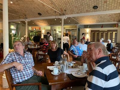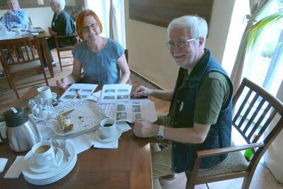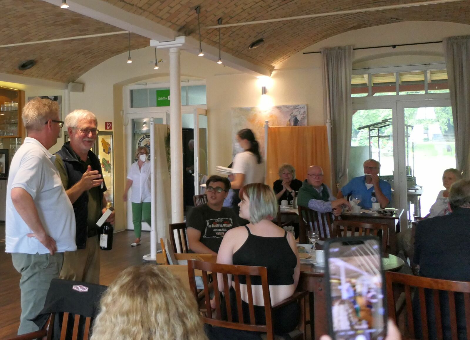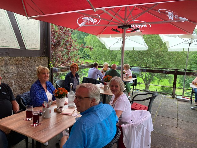 Aber am Golfclub angekommen, hatte der Regen schon wieder aufgehört. Kaffee und Kuchen standen bereit, während Sektionsleiter Rüdiger Bonneß samt Gattin Kerstin die Auswertung der abgegebenen Antworten auf den Bögen vornahm. Das Ergebnis war entsprechend dem Motto einer bekannten Molkerei: „Alles Müller oder was?“ Ingrid und Andreas Müller hatten fast alle Suchbilder entdeckt und auch die Fragen gut beantwortet. Eine Flasche Riesling-Sekt aus dem Rheingau belohnte diese Leistung. Der Dank galt aber vor allem Christine und Martin Dolleschel, die sich die wunderschöne Strecke ausgedacht hatten. Und das Beste: Martin kündigte an, in 2022 wieder eine Ausfahrt zu organisieren. Der Schreiber dieser Zeilen hofft allerdings inständig, dass er bis dahin ein anderes Planungstool hat…