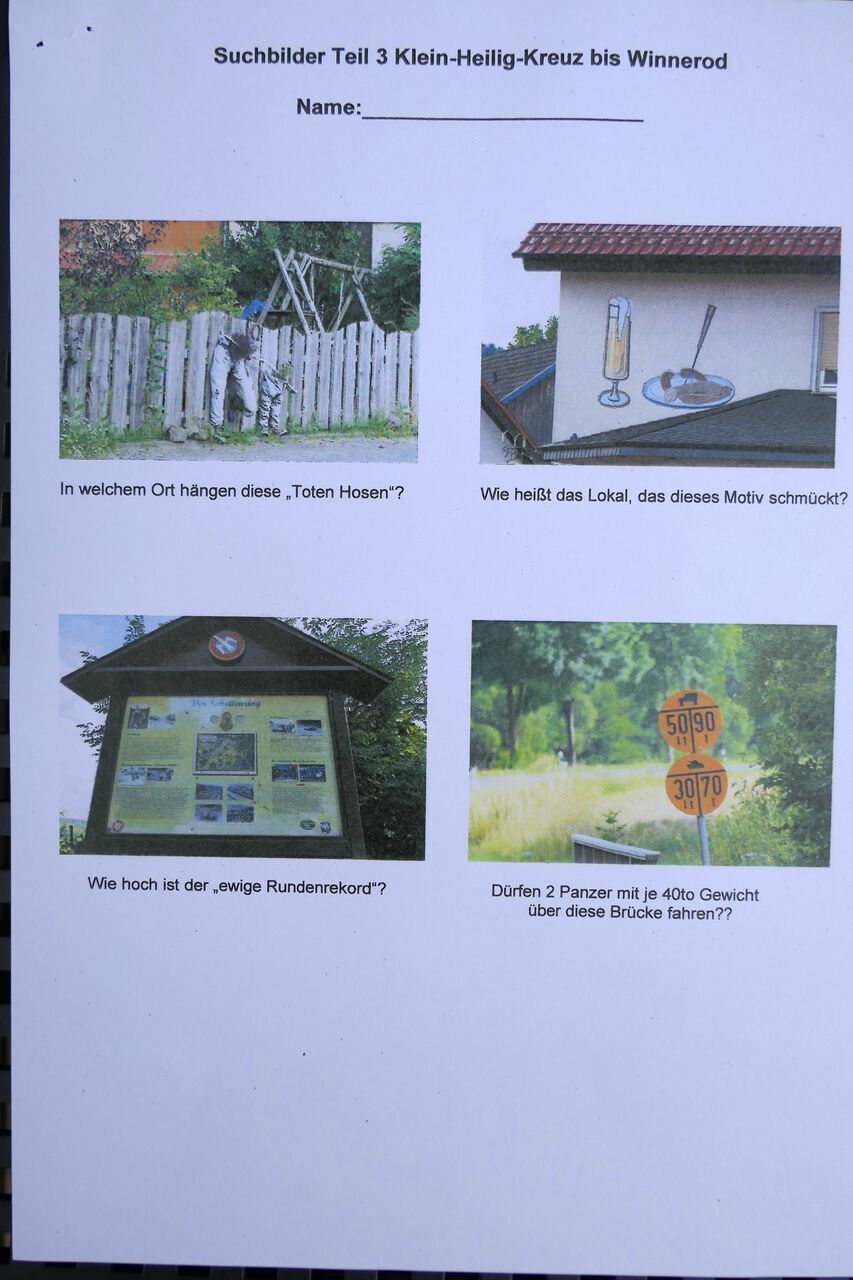 Um über den reinen Streckenverlauf hinaus Gesprächsstoff für Fahrer und Beifahrer sicherzustellen, gab es ein Blatt mit Suchbildern für jeden Streckenabschnitt. Ein wachsames Auge war hier von Beiden gefordert. Das zu trainieren, kann ja auch ganz wertvoll für andere Situationen sein.