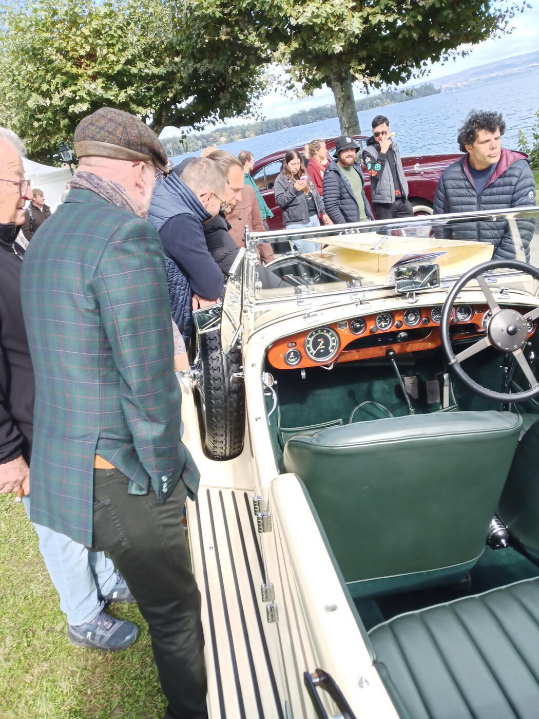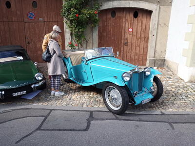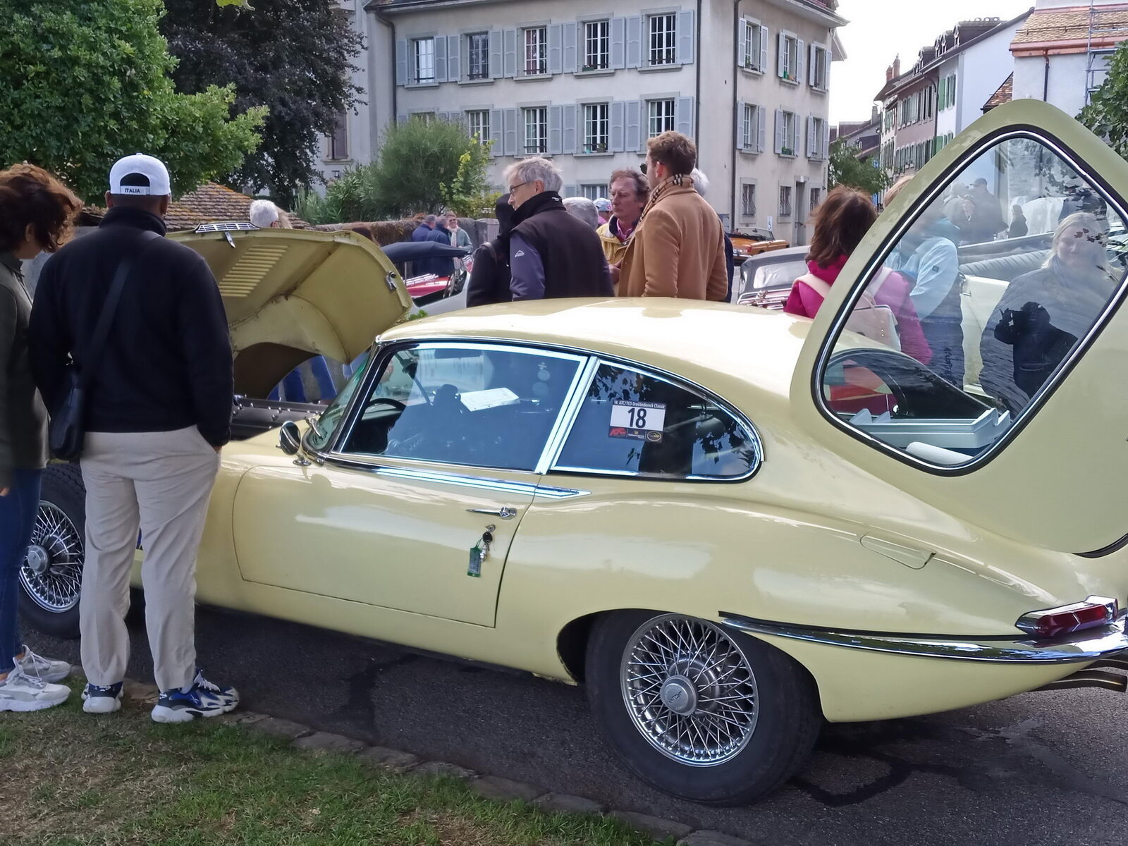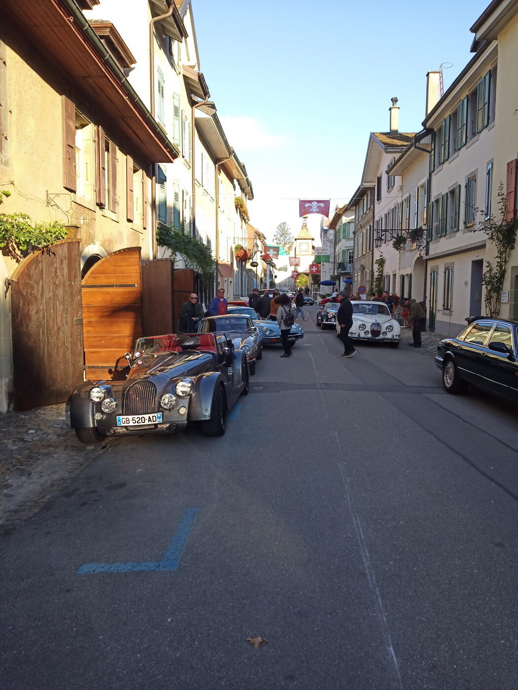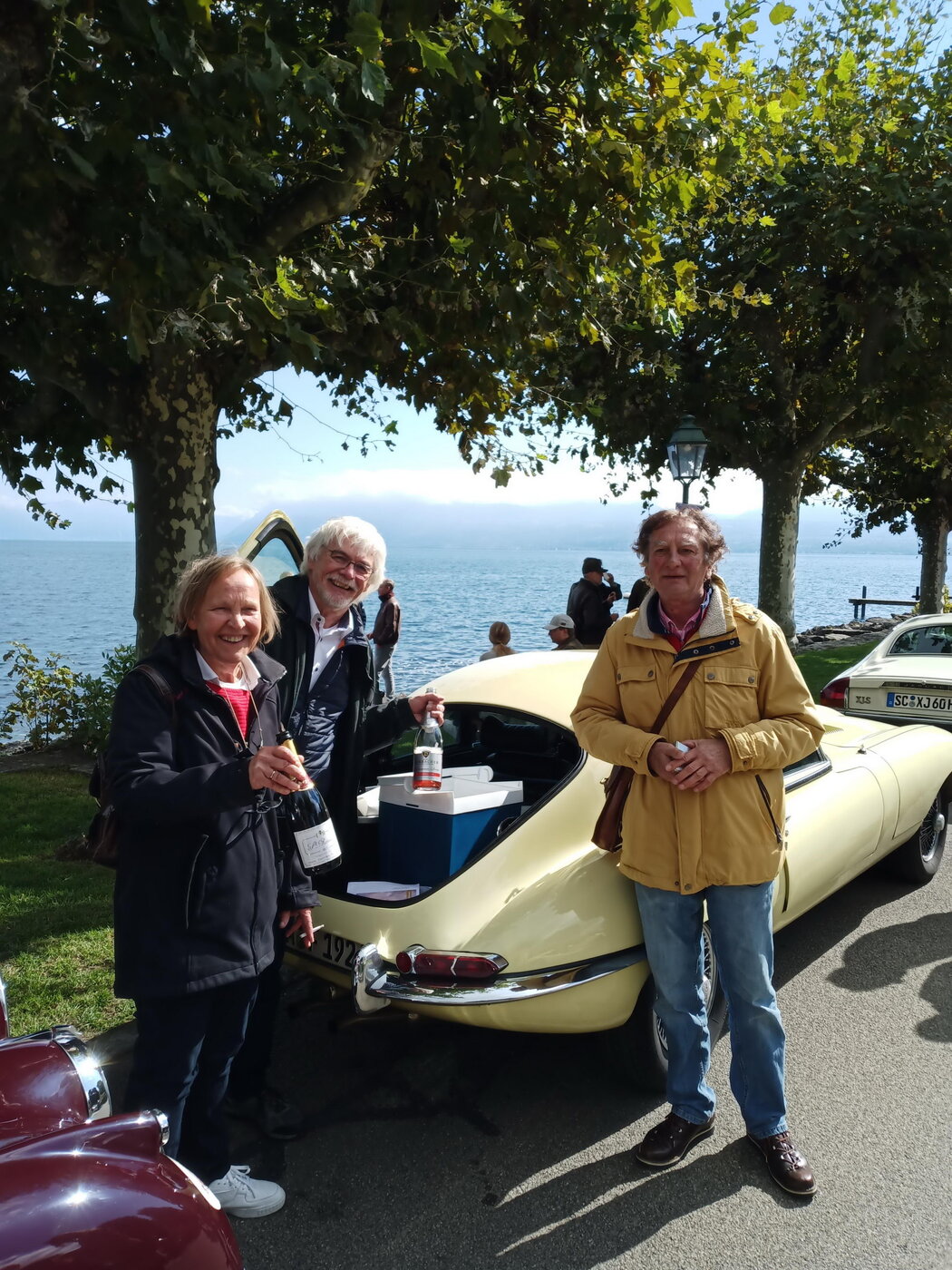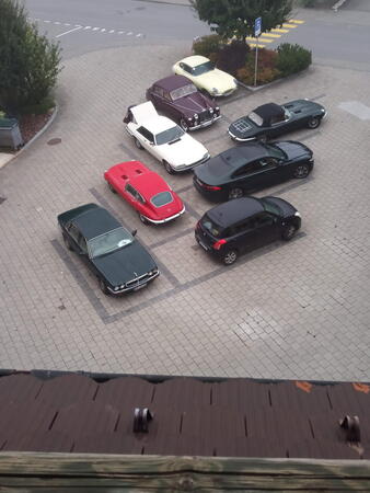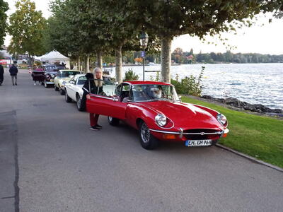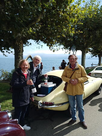 So weit von einer Begegnung der besonderen Art. Die vielen anderen Begegnungen sollen aber nicht unerwähnt bleiben. So hat auch in St. Prex wie eigentlich überall das Öffnen der Haube eines E-Type zu dem geführt, was die Besitzer solcher Fahrzeuge sicher kennen: Es bildet sich schnell eine Menschenansammlung, es wird, gefragt, gestaunt und gefachsimpelt.
