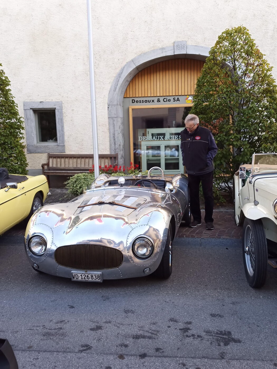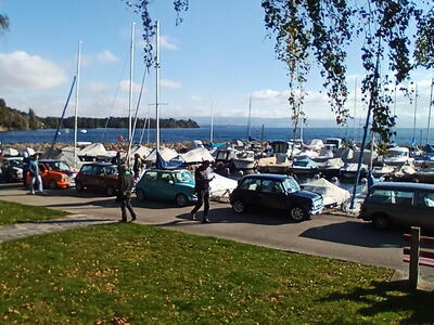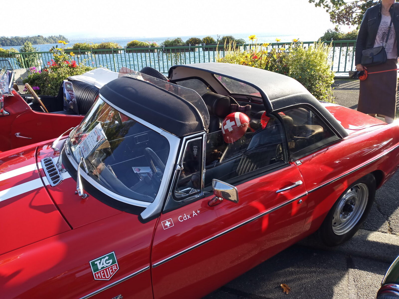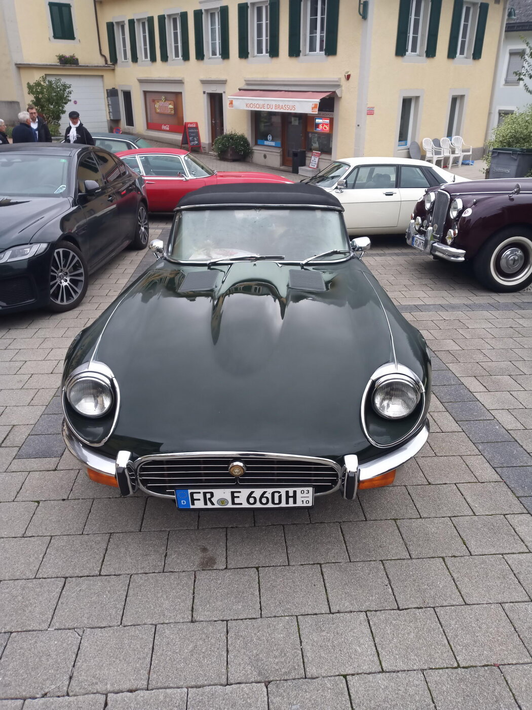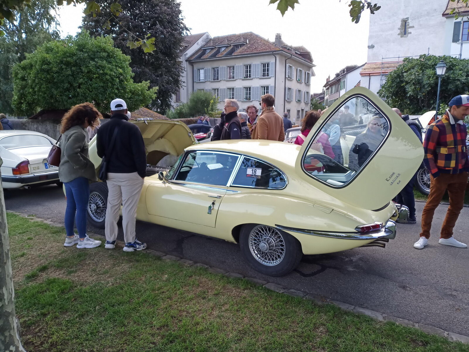 So weit von einer Begegnung der besonderen Art. Die vielen anderen Begegnungen sollen aber nicht unerwähnt bleiben. So hat auch in St. Prex wie eigentlich überall das Öffnen der Haube eines E-Type zu dem geführt, was die Besitzer solcher Fahrzeuge sicher kennen: Es bildet sich schnell eine Menschenansammlung, es wird, gefragt, gestaunt und gefachsimpelt.