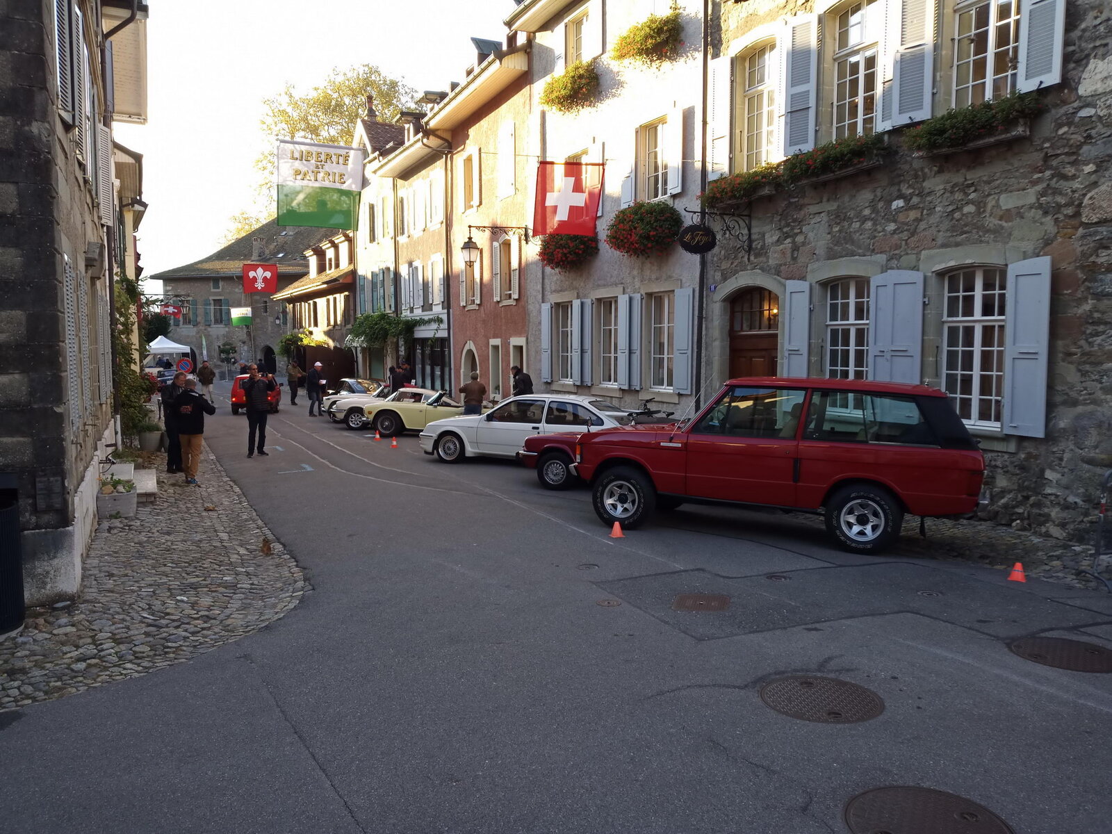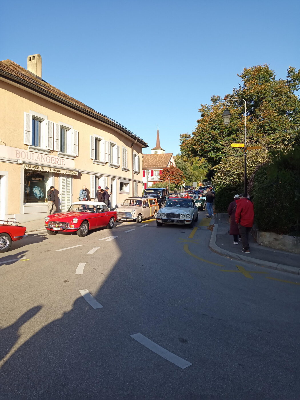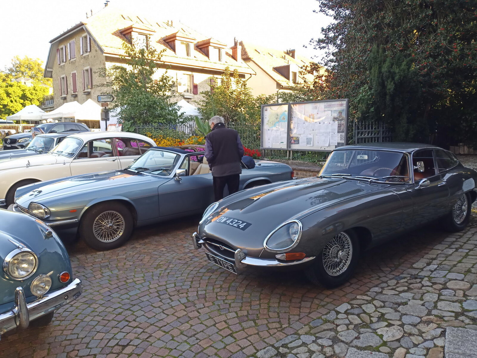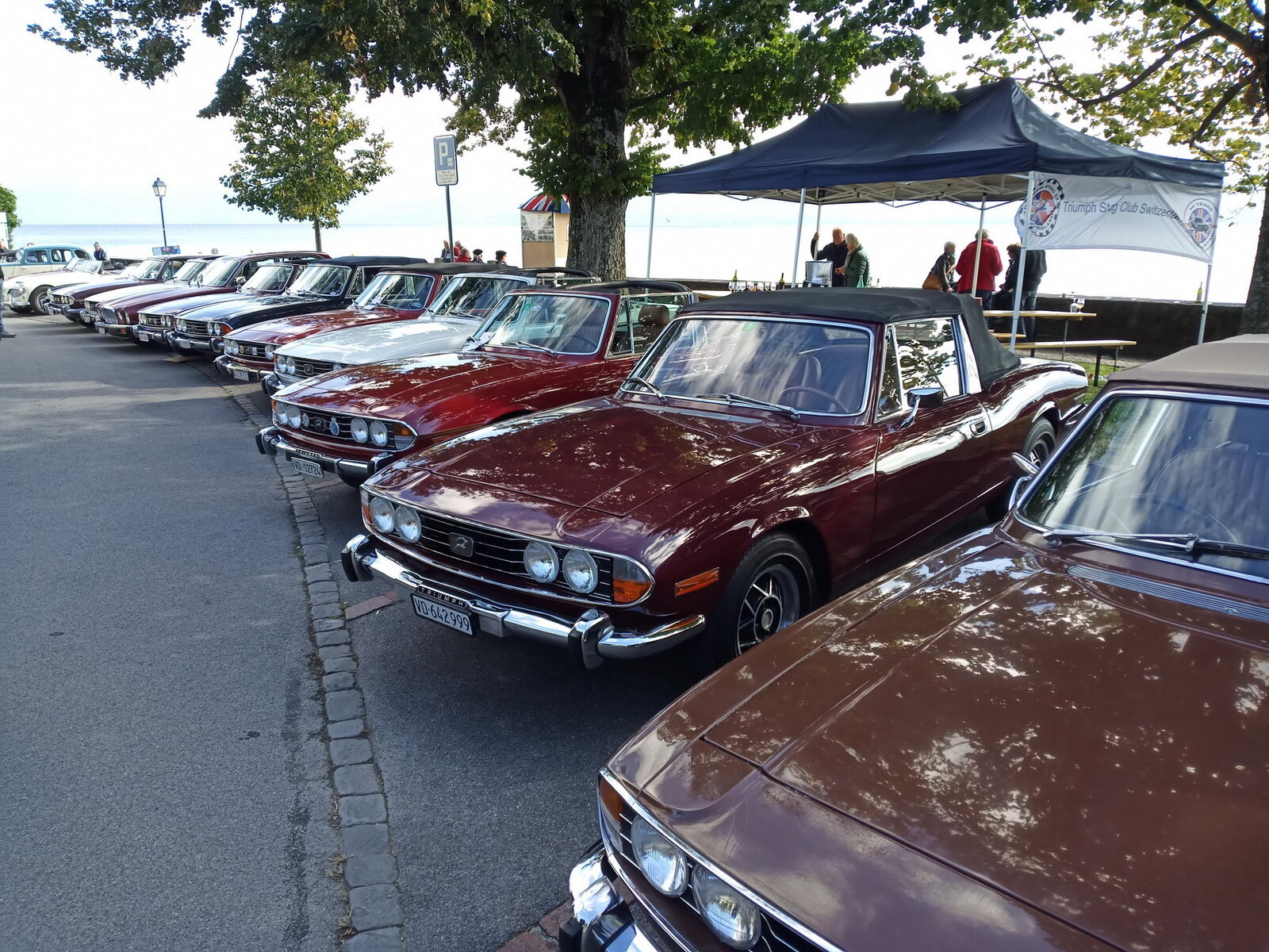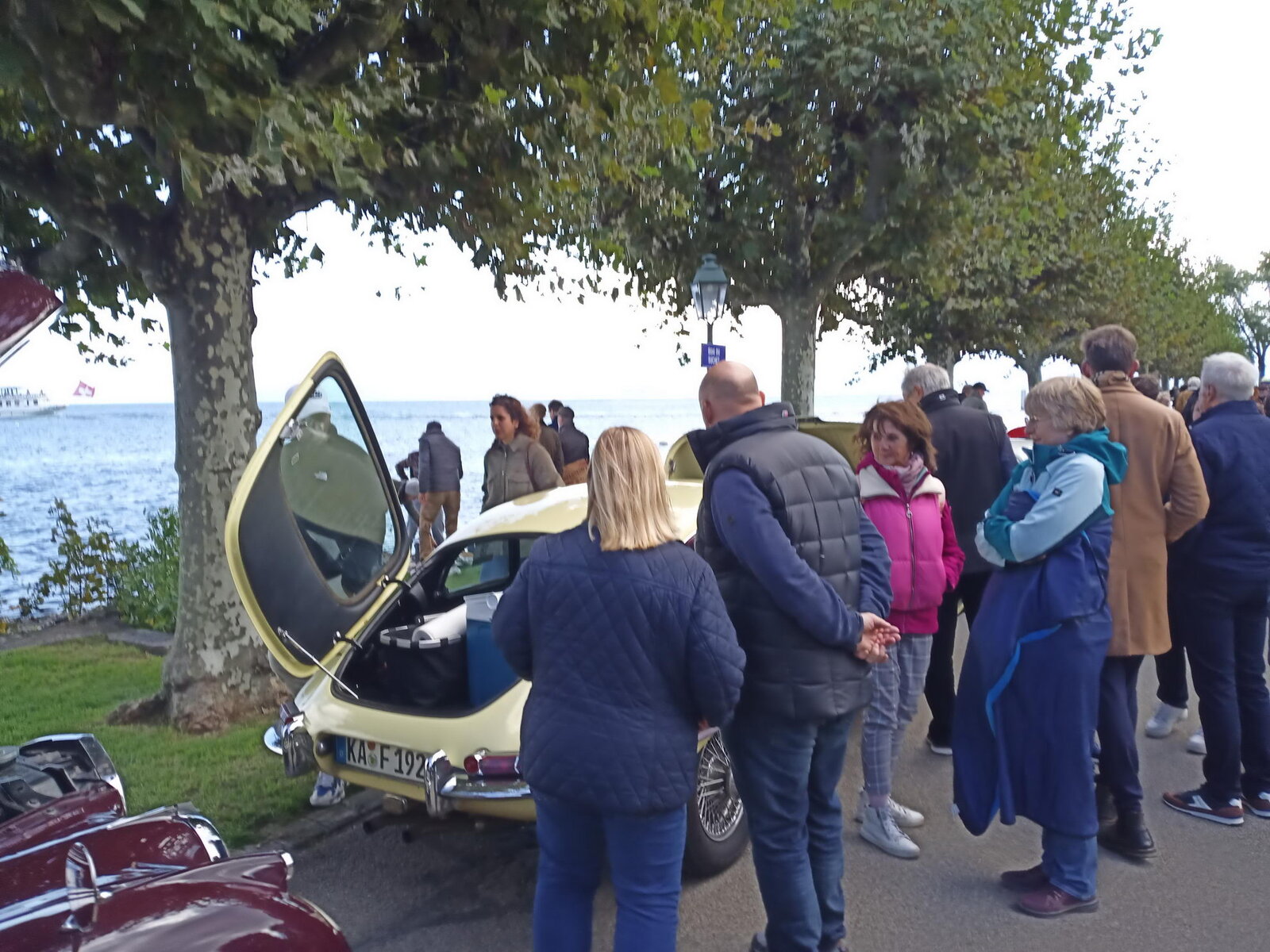 So weit von einer Begegnung der besonderen Art. Die vielen anderen Begegnungen sollen aber nicht unerwähnt bleiben. So hat auch in St. Prex wie eigentlich überall das Öffnen der Haube eines E-Type zu dem geführt, was die Besitzer solcher Fahrzeuge sicher kennen: Es bildet sich schnell eine Menschenansammlung, es wird, gefragt, gestaunt und gefachsimpelt.