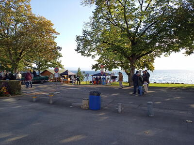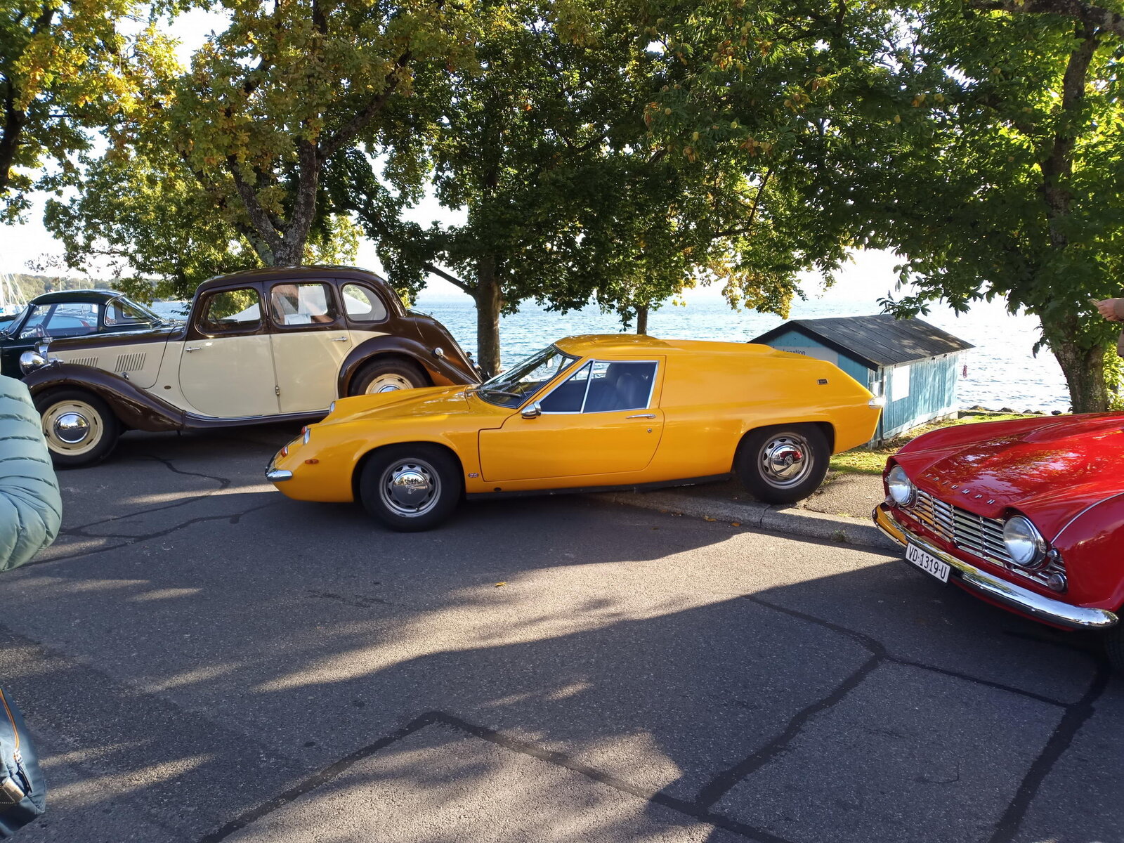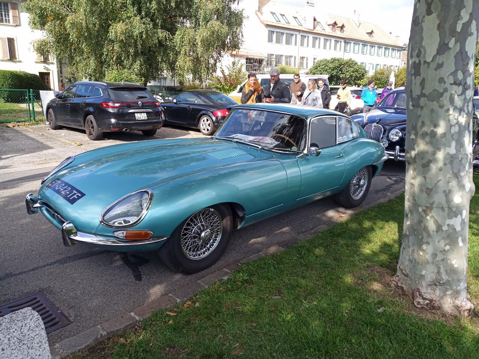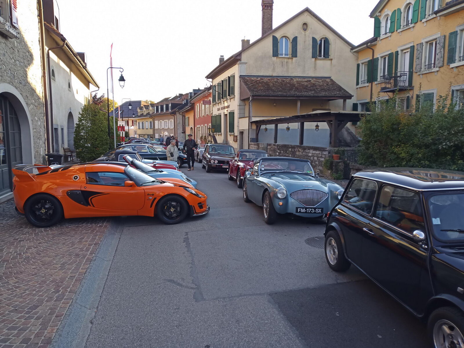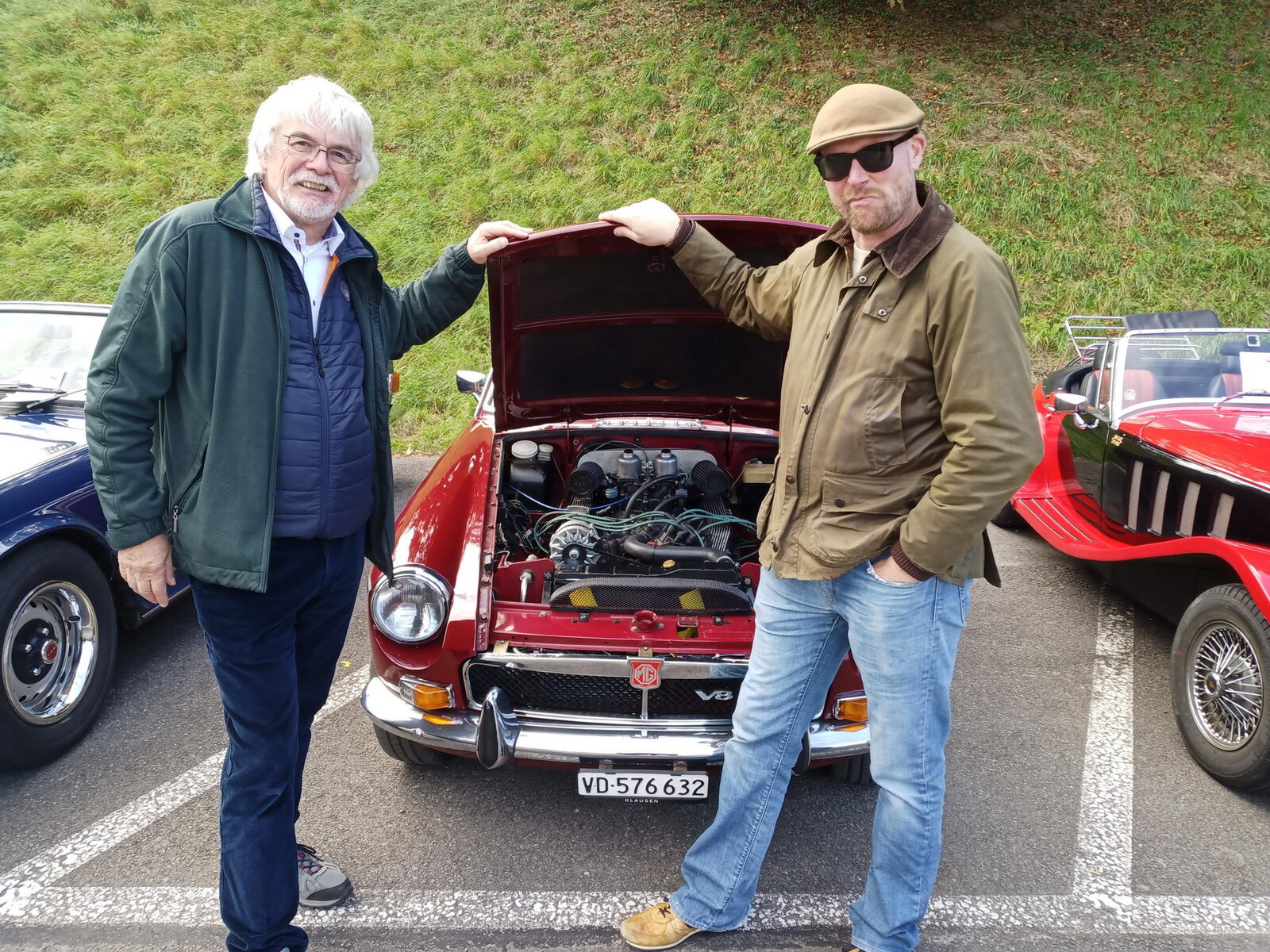 So weit von einer Begegnung der besonderen Art. Die vielen anderen Begegnungen sollen aber nicht unerwähnt bleiben. So hat auch in St. Prex wie eigentlich überall das Öffnen der Haube eines E-Type zu dem geführt, was die Besitzer solcher Fahrzeuge sicher kennen: Es bildet sich schnell eine Menschenansammlung, es wird, gefragt, gestaunt und gefachsimpelt.