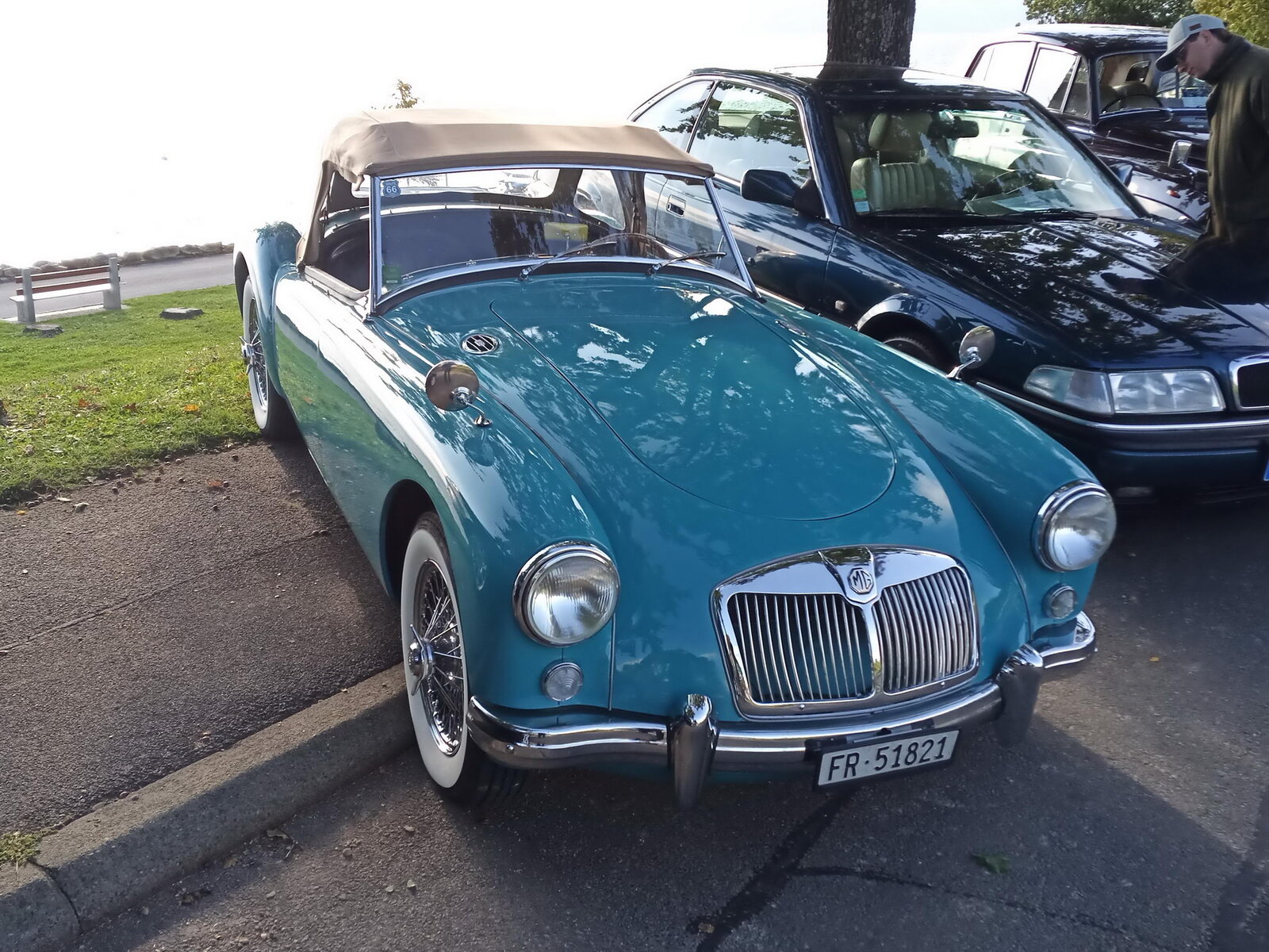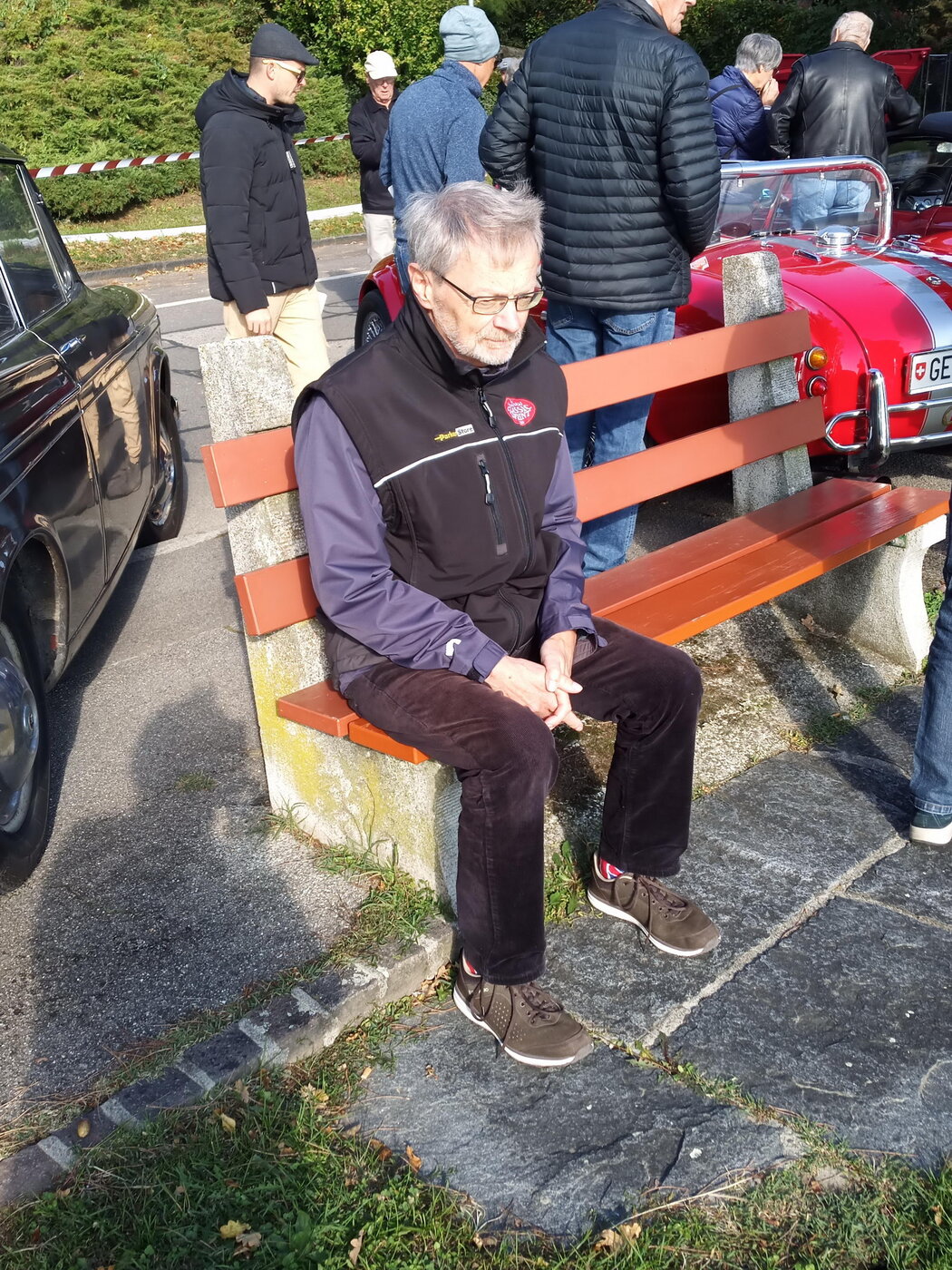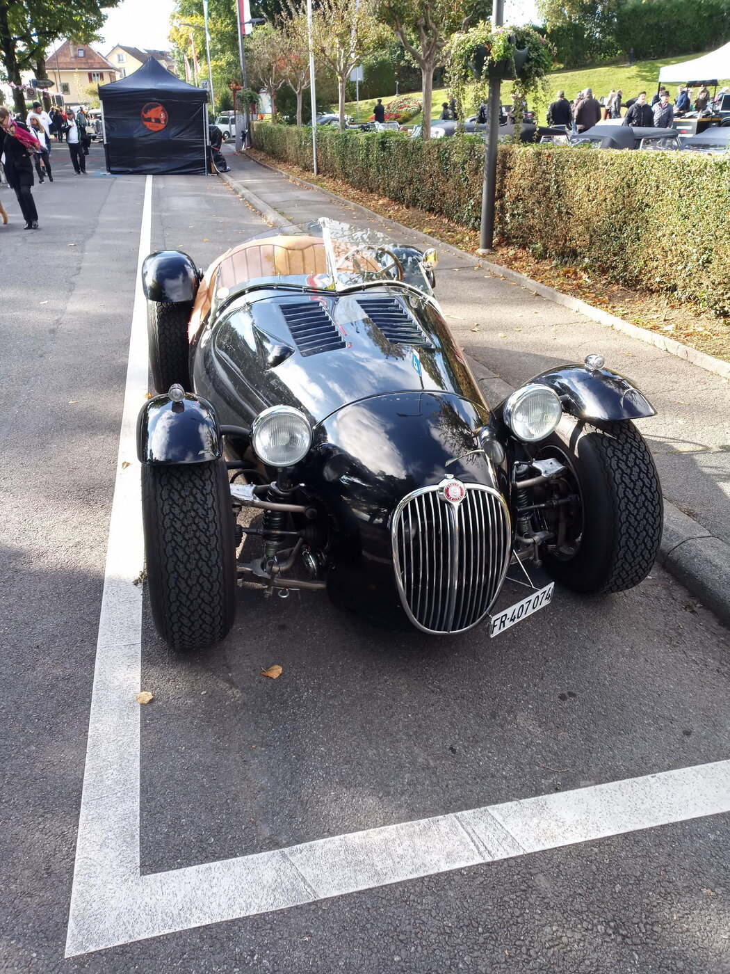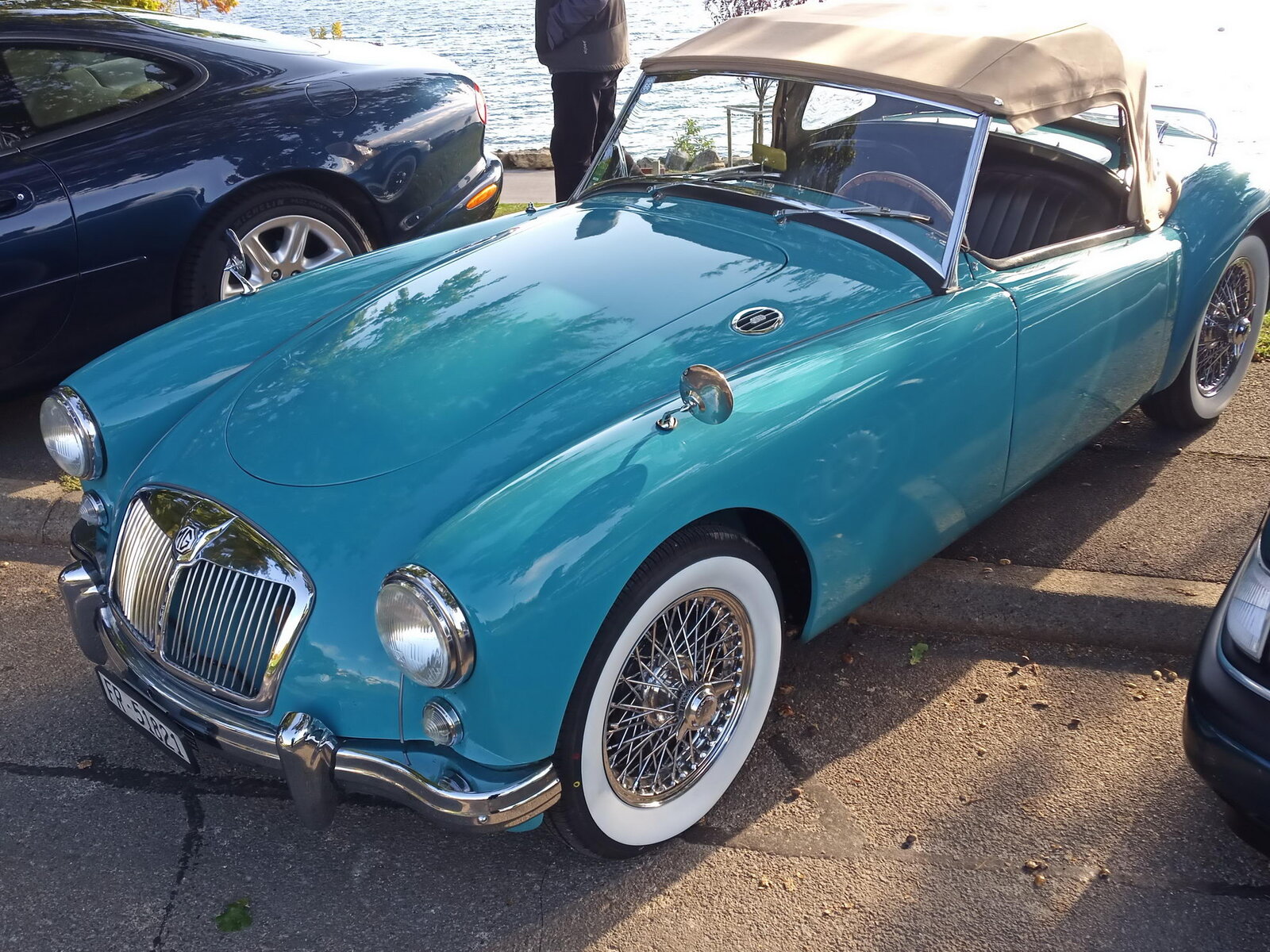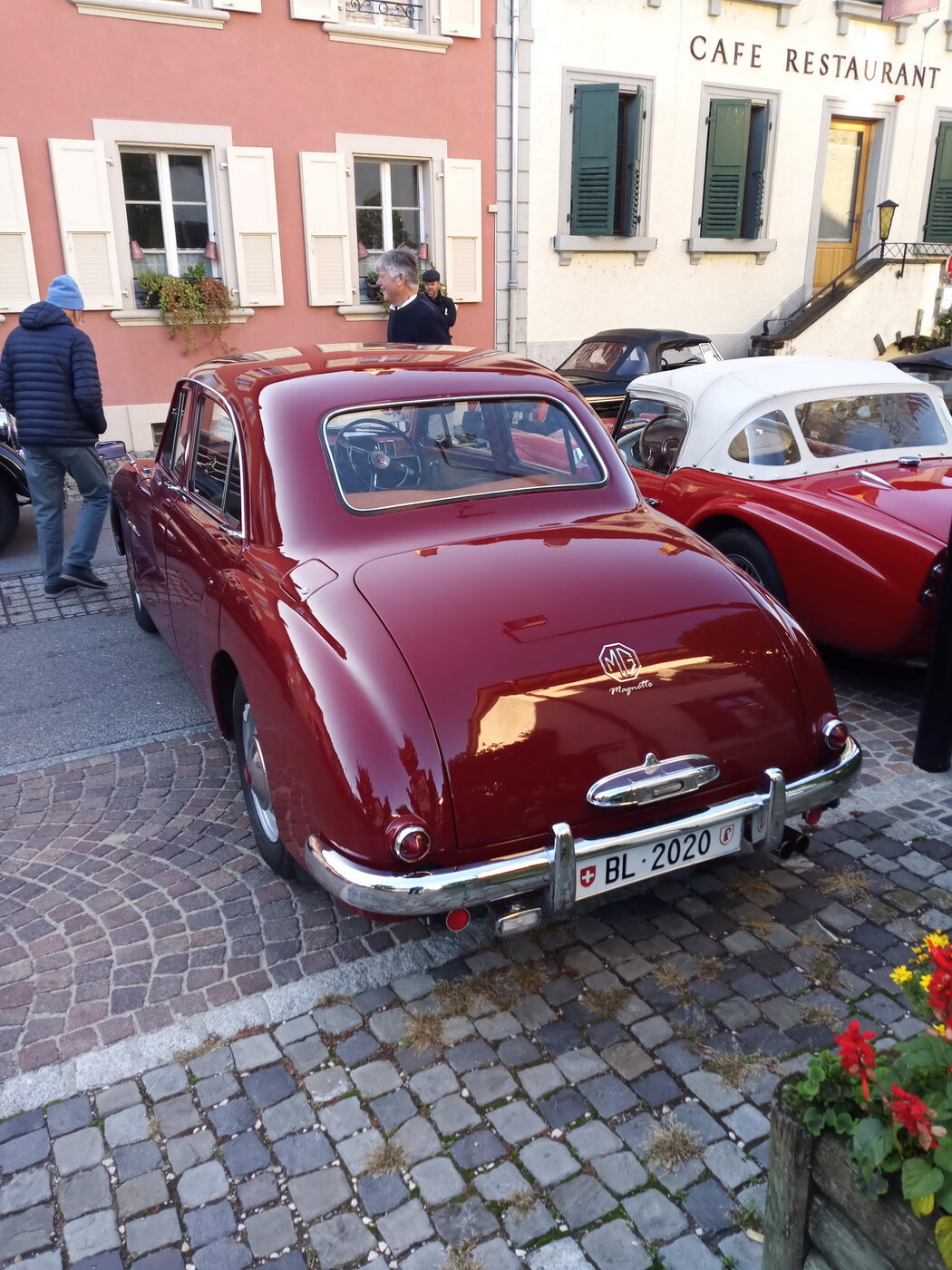 So weit von einer Begegnung der besonderen Art. Die vielen anderen Begegnungen sollen aber nicht unerwähnt bleiben. So hat auch in St. Prex wie eigentlich überall das Öffnen der Haube eines E-Type zu dem geführt, was die Besitzer solcher Fahrzeuge sicher kennen: Es bildet sich schnell eine Menschenansammlung, es wird, gefragt, gestaunt und gefachsimpelt.