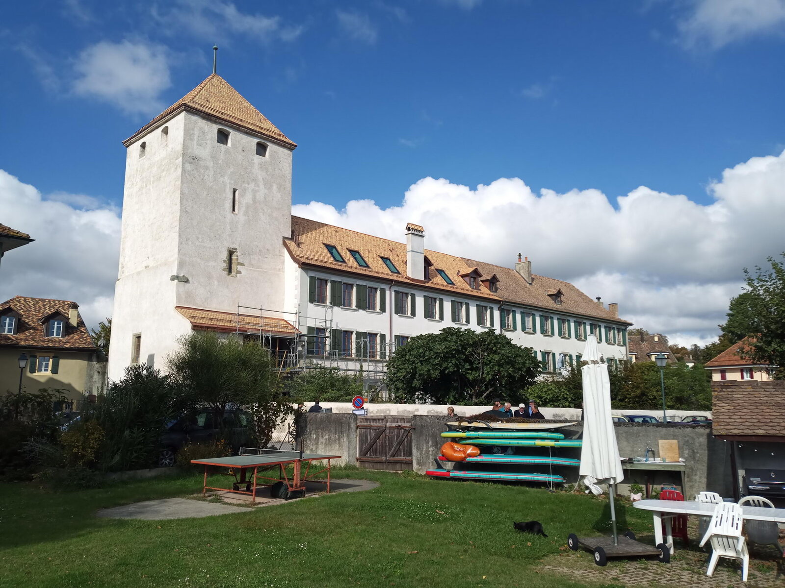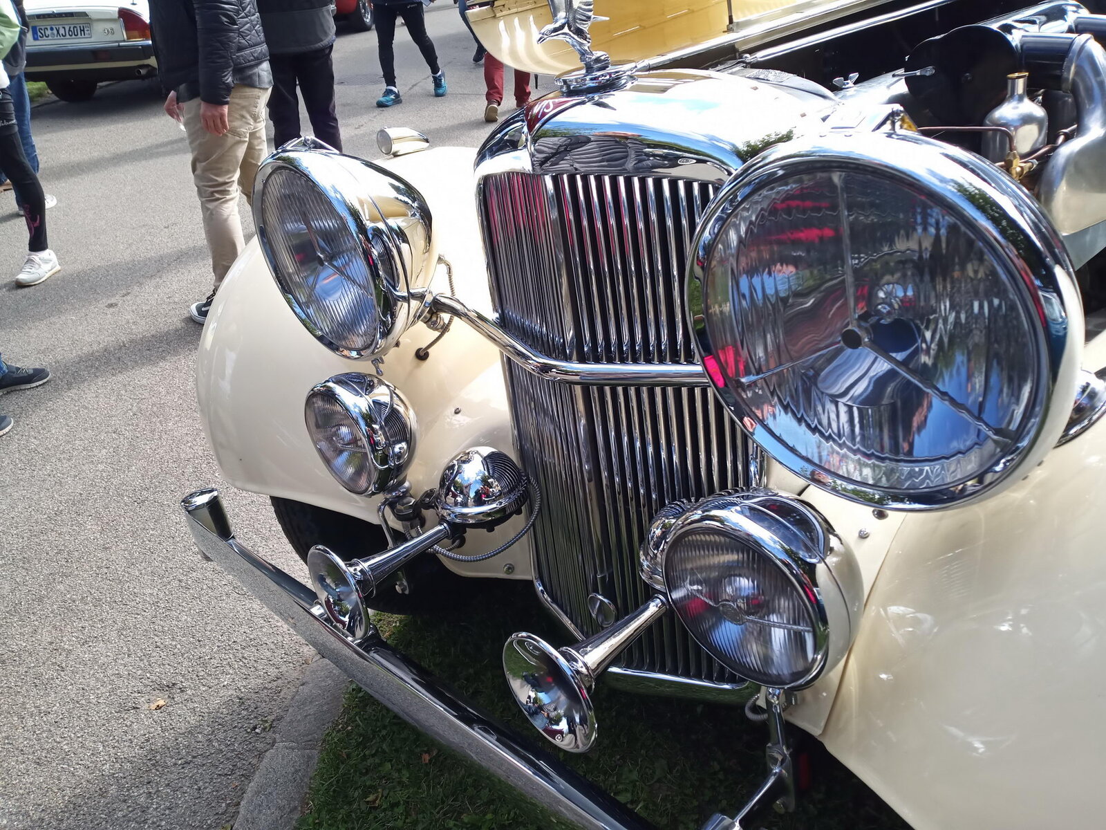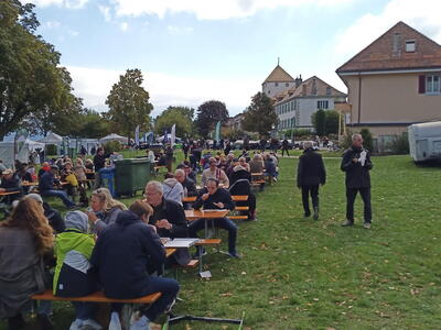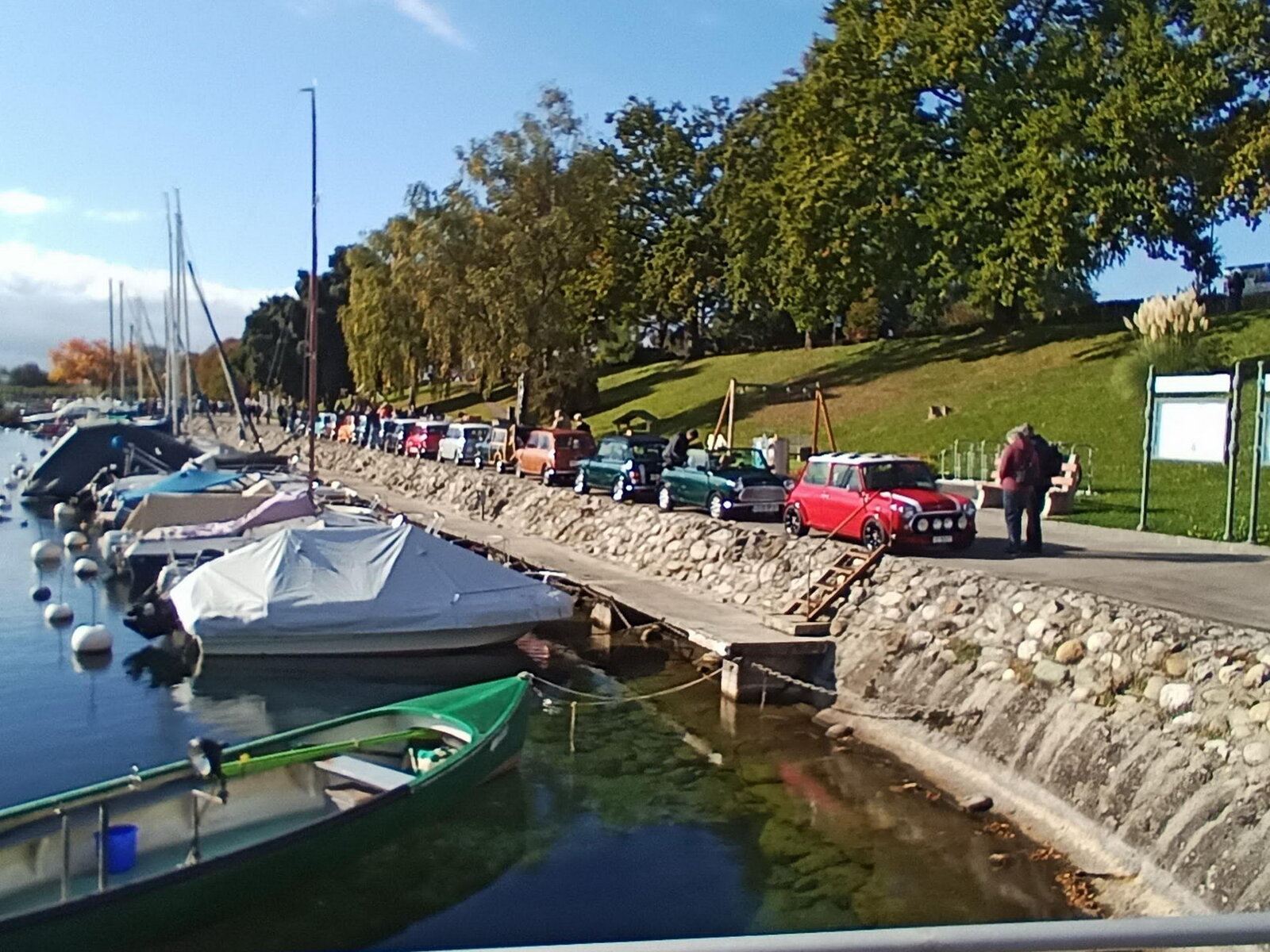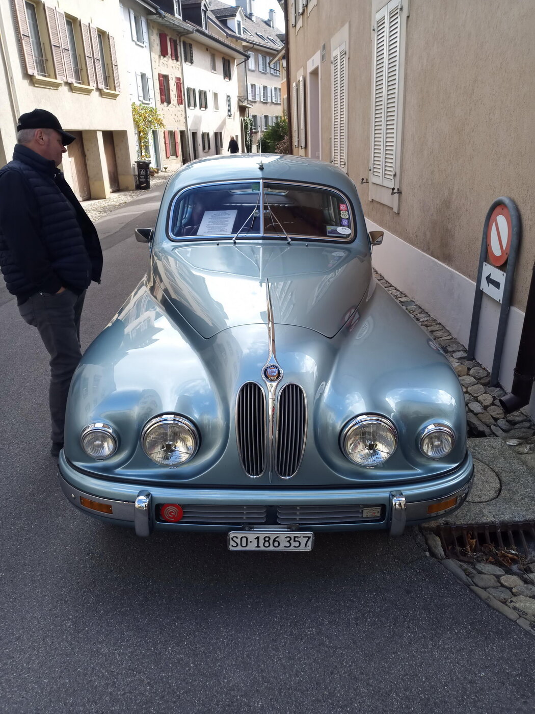 So weit von einer Begegnung der besonderen Art. Die vielen anderen Begegnungen sollen aber nicht unerwähnt bleiben. So hat auch in St. Prex wie eigentlich überall das Öffnen der Haube eines E-Type zu dem geführt, was die Besitzer solcher Fahrzeuge sicher kennen: Es bildet sich schnell eine Menschenansammlung, es wird, gefragt, gestaunt und gefachsimpelt.
