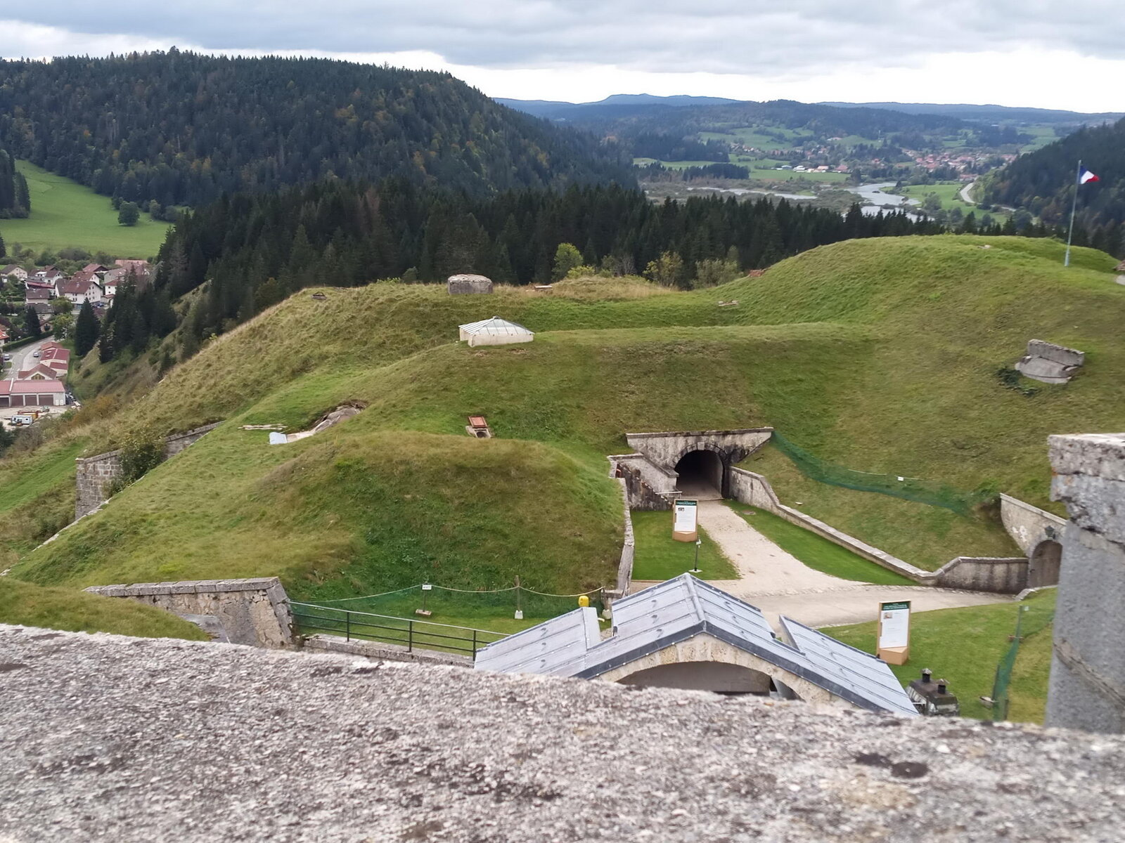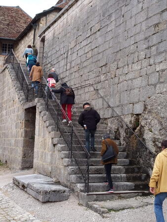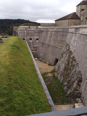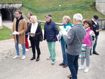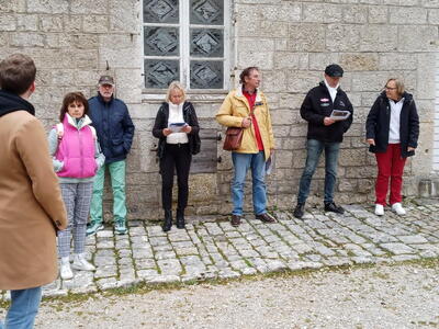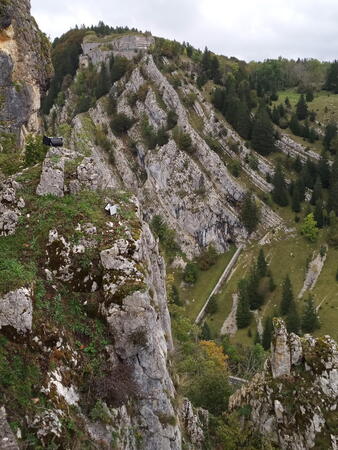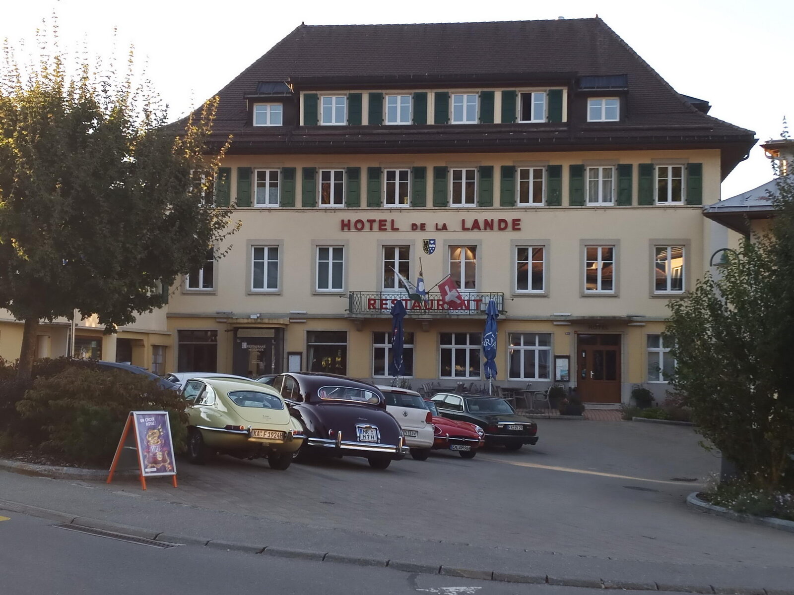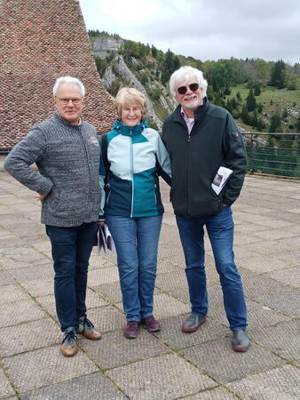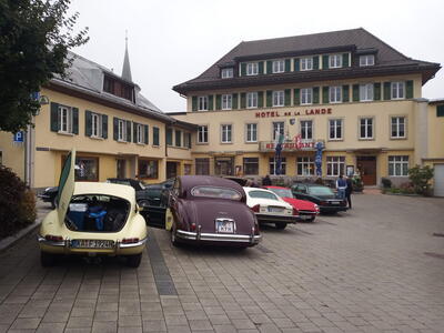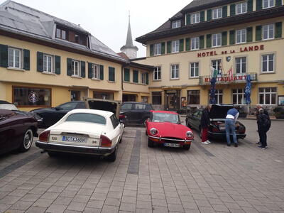 Gestärkt durch ein „petit-déjeuner“ mit Kaffee, frischen Croissants und selbstgekochter Marmelade in der Küche der Seidels in „Fresse sur Moselle“ ging es in zügiger Fahrt - die Performance des vorausfahrenden Big Saloon MK 7 M beeindruckte durchaus - über traumhafte meist kleine Straßen Richtung französischem Jura. Zwischenziel war das Château de Joux, eine Höhenburg, die bereits im Jahr 1034 urkundlich erwähnt wurde. Der steile Weg vom Parkplatz zum Burgtor war eine willkommene Möglichkeit den Beinen der Fahrzeuginsassen etwas Bewegung zu verschaffen. Leider konnte uns das Personal der Burg entgegen der Absprache nur eine Führung in französischer Sprache bieten. Damit wurde die Gruppe eingestimmt auf das, was sie in der Schweiz erwartete. Denn wer meinte, dort könne man wieder mit Deutsch weiterkommen irrte; die romanische Schweiz spricht Französisch und nur sehr wenige können Deutsch. Ziel der ersten Etappe war Le Brassus, ein Dorf mit 1400 Einwohnern im Vallée de Joux, das Uhrenliebhabern bekannt sein dürfte, denn hier ist der Sitz der weltbekannten Firma Audemars Piguet. Aber nicht die Uhren waren der Grund für Le Brassus, sondern das Hotel De La Lande, in dem alle Mitglieder der Freiburger Reisegruppe unterkamen.