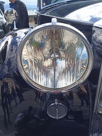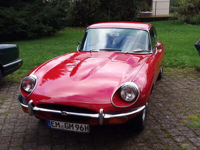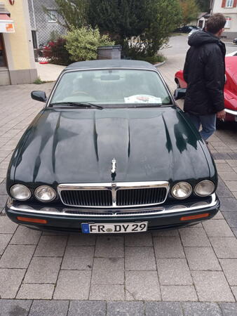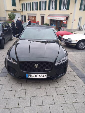 Gestärkt und vor allem auch gewärmt ging es danach hinaus zum Schauen, Staunen, Fachsimpeln oder einfach nur Genießen. Zu meinen, die Fahrzeuge seien die Hauptsache bei einem solchen Meeting ist zu kurz gedacht. Die Begegnungen mit den Menschen, die die Fahrzeuge besitzen oder einfach nur bewundern, macht das Einmalige eines solchen Treffens aus. Eine ganz besondere Begegnung hatten wir mit Christian Jenny. Den Jaguar-Insidern, nicht nur in der Schweiz, wird der Name bekannt sein. Christian besitzt eine außerordentliche Sammlung von 12 Jaguar-Fahrzeugen, angefangen mit einem SS 90 von 1935 bis hin zu einem XJ6 aus den 1970er. Der absolute Höhepunkt seiner Sammlung ist aber sicher der "9600 HP". Dieses britische Kennzeichen trug der erste Jaguar E-Type, der 1961 auf dem Genfer Autosalon noch mit der Typ-Bezeichnung XK-E vorgestellt wurde. Wie Christian betont, kann nur dieses Fahrzeug, ein Coupé in der Farbe Opalescent Gunmetal Grey, der Maßstab der Originalität der E-Types der Series 1 oder, wie Christian zutreffend sagte, der Urmeter eines E-Type sein.