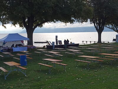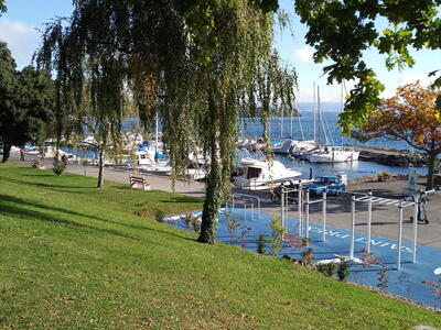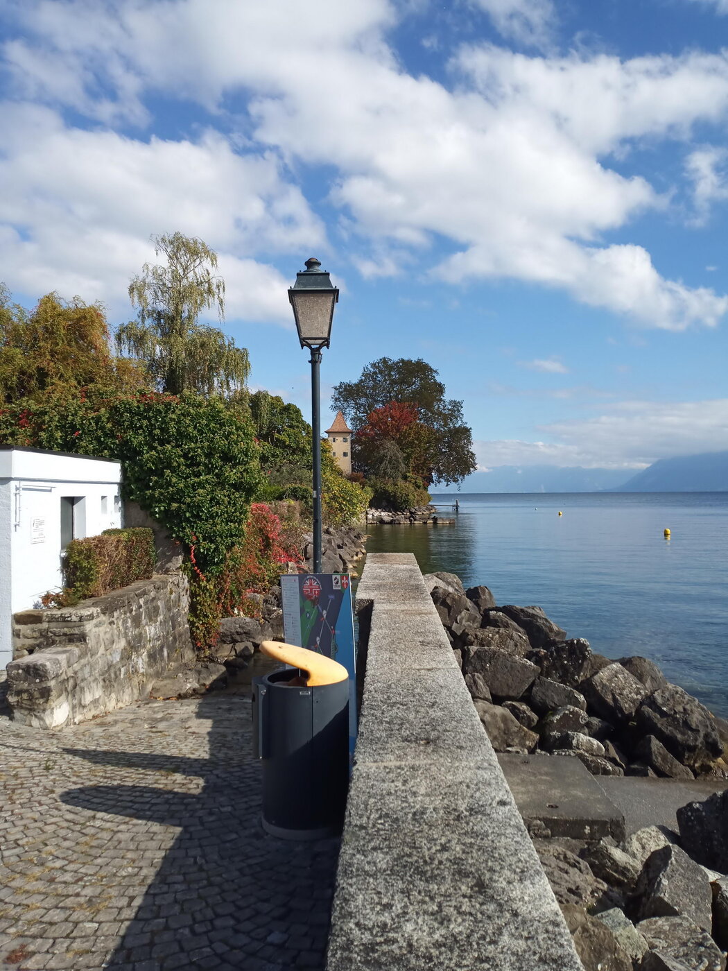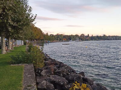 Die Stecke mit einer Fahrzeit von etwa 30 Minuten führte aus dem Hochtal „Vallée de Joux“ heraus über den 1447 m hohen Col du Marchairuz hinunter nach Bière und weiter nach St. Prex. Wie erhofft, hatte sich das frühe Aufstehen gelohnt. Wir kamen ohne Stau in das abgeschirmte Städtchen und erhielten Stellplätze direkt an der Seepromenade.