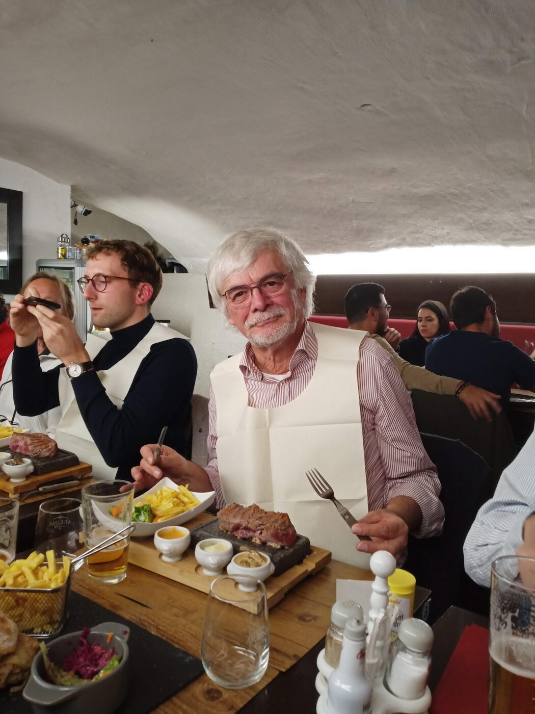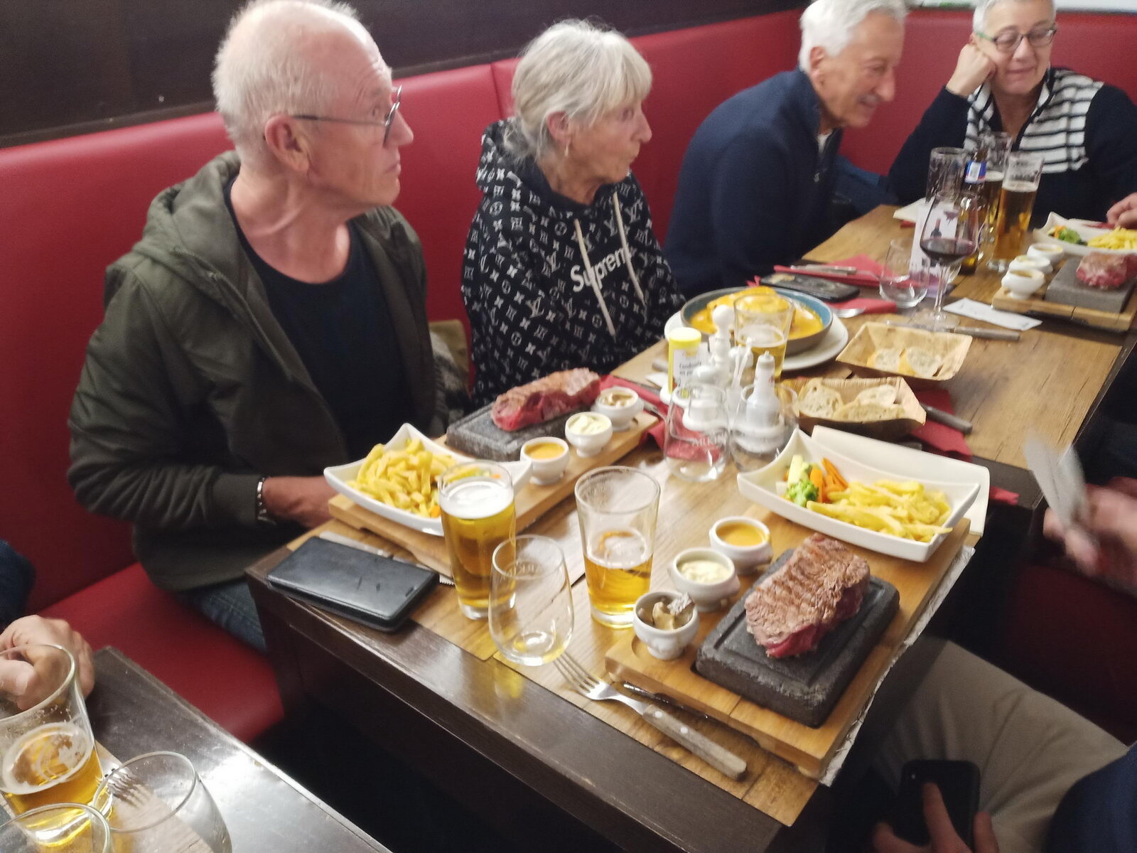 Mit der Erinnerungen an einen sehr schönen Tag ging es ab 16 Uhr wieder zurück zu unserer Unterkunft in Le Brassus. Wie schon tags zuvor traf sich die Gruppe unweit vom Hotel im „Chez Lily“, das man durchaus weiterempfehlen muss. Beim Entrecôte vom heißen Stein wurden einige zum Wiederholungstäter.