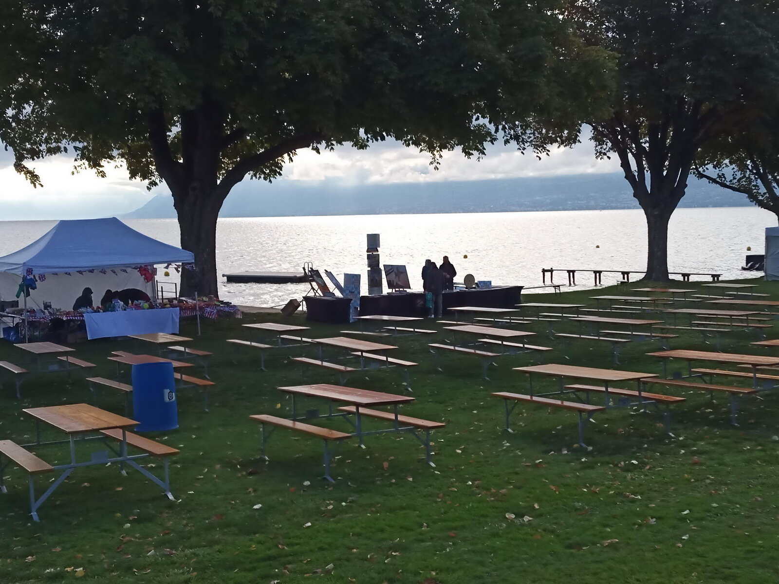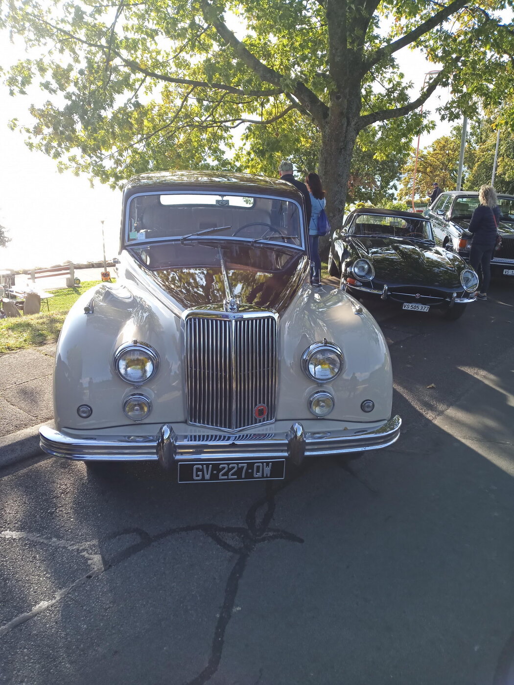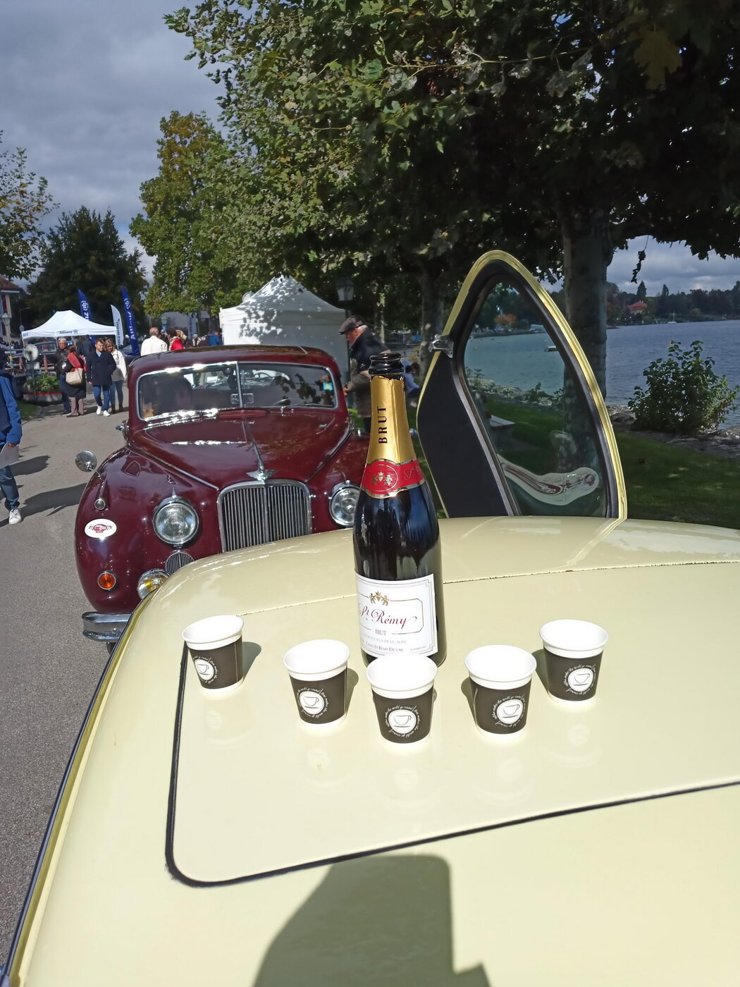 Es ist der Tag des großen Briten-Treffens für das man die lange Anreise in Kauf genommen hat. Ohne „petit déjeuner“ machen sich die Unentwegten unserer Gruppe bereits um 7 Uhr auf den Weg nach St. Prex am Genfer See. Man wollte ja gute Stellplätze ergattern. In der Dämmerung wurden die Motoren gestartet und vermutlich sind die, die nicht so früh aufstehen wollten, dann doch wach geworden. Aber ehrlich, was gibt es neben Glockengeläut Schöneres in der Frühe als den Sound eines startenden Jaguar-Motors?